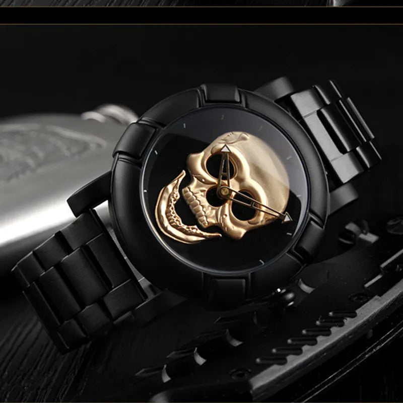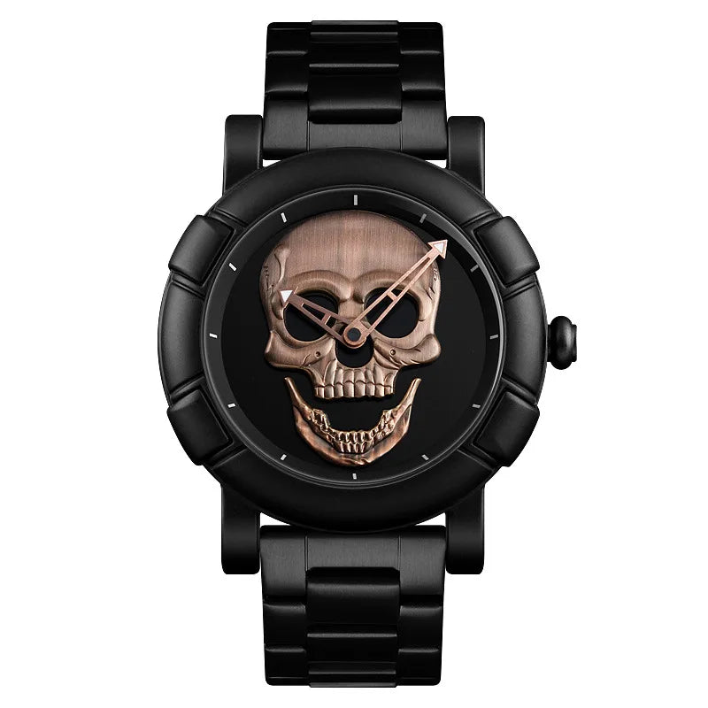 - Einzigartiges Totenkopf-Motiv: Das auffällige Zifferblatt mit Schädel-Design schafft einen unverwechselbaren Gothic-Look.