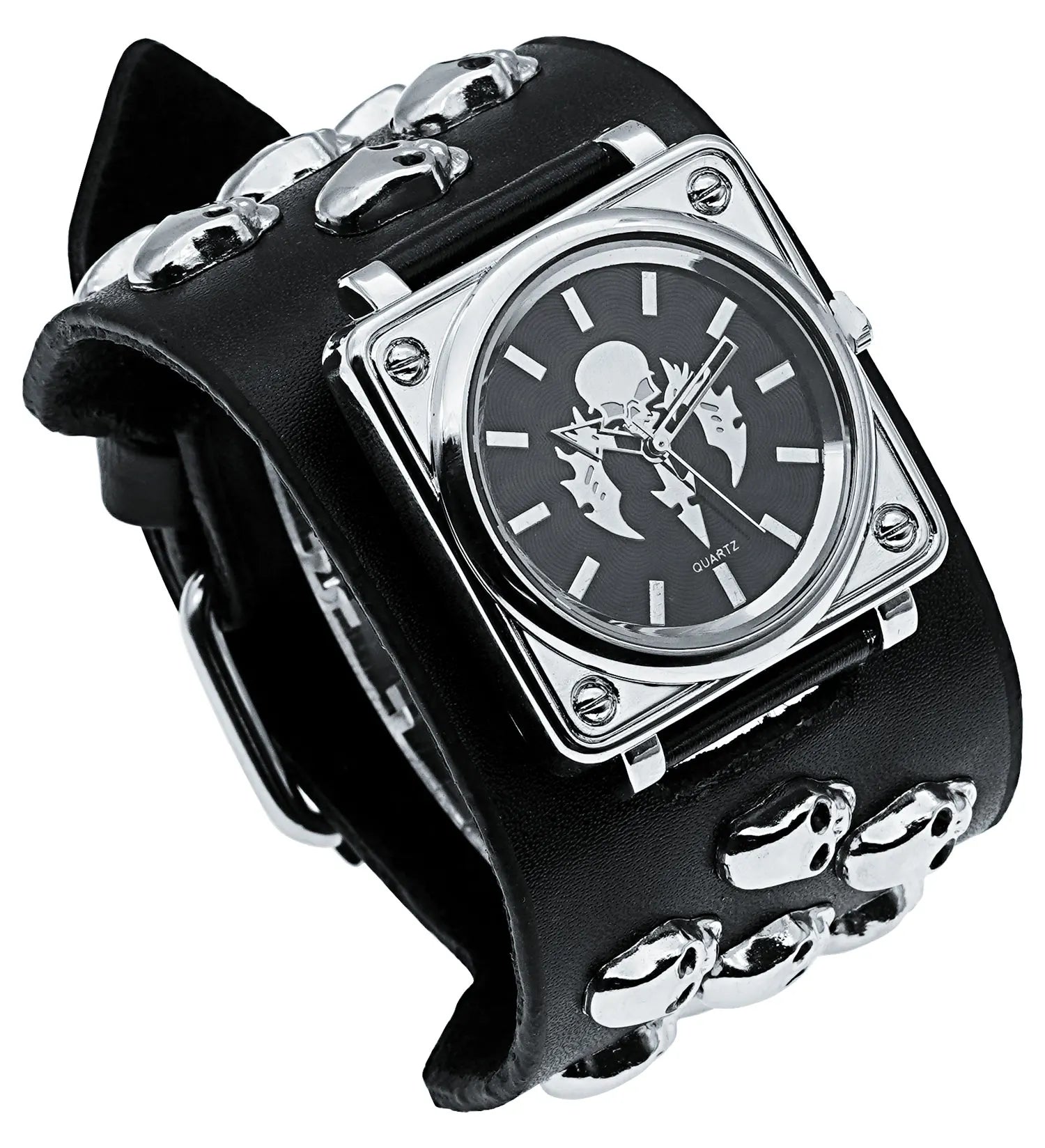Tragen Sie diese Gothic Herrenarmbanduhr mit Totenkopf und 40mm Zifferblatt mit einem Gothic T-Shirt für Herren und kombinieren Sie sie mit rockigen Gothic Herrenschuhen oder einem passenden Gothic Schmuck für Herren, um Ihren individuellen Stil eindrucksvoll zu unterstreichen.