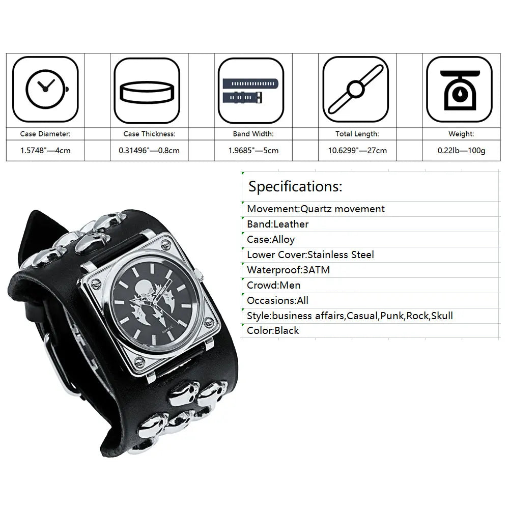 Verpassen Sie nicht die Gelegenheit, Ihre Accessoire-Sammlung mit dieser einzigartigen Gothic Herrenarmbanduhr mit Totenkopf und 40mm Zifferblatt zu erweitern. Ob als Geschenk oder für sich selbst – dieses Modell ist ein absolutes Must-have für den stilbewussten Gothic-Mann.