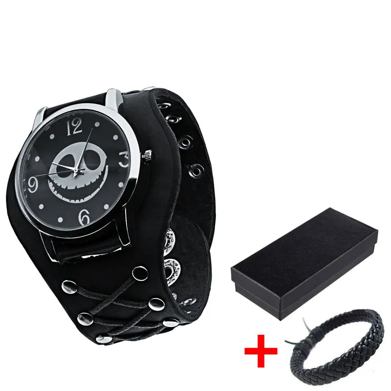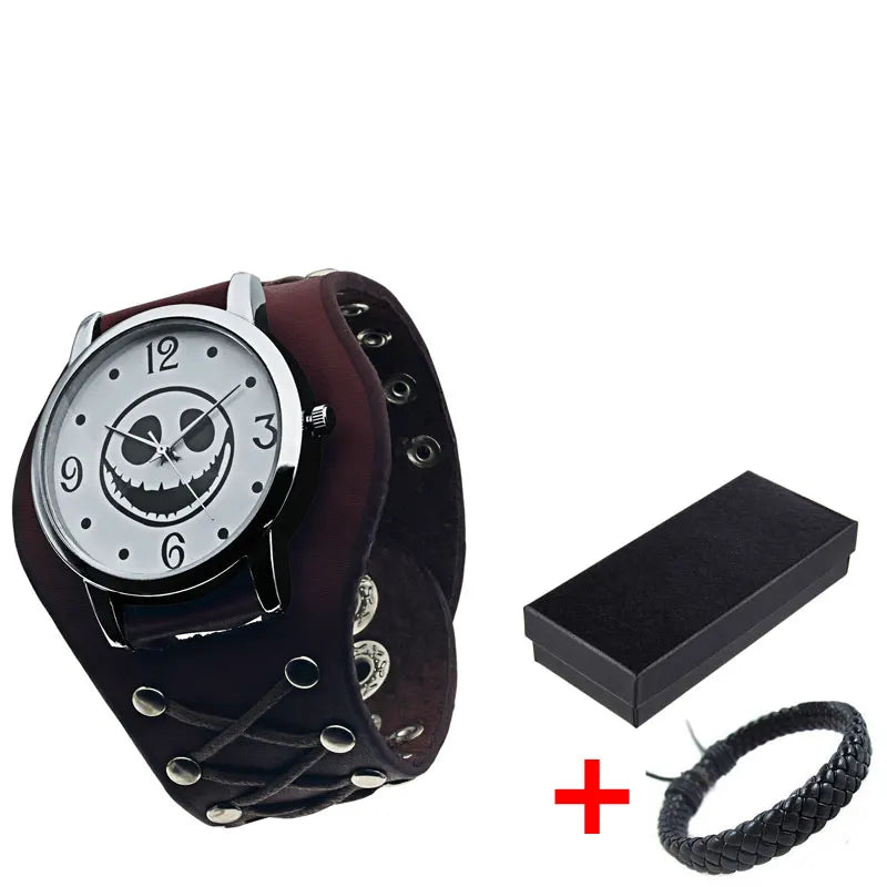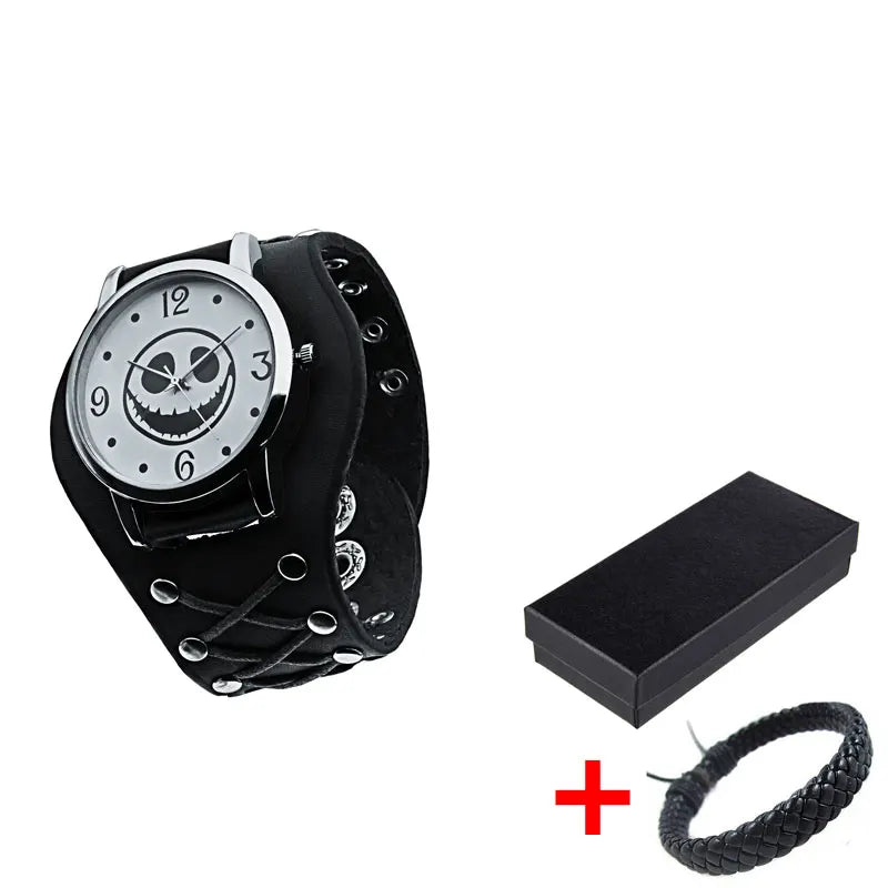 Gothic Herrenarmbanduhr mit Totenkopf und Lederband