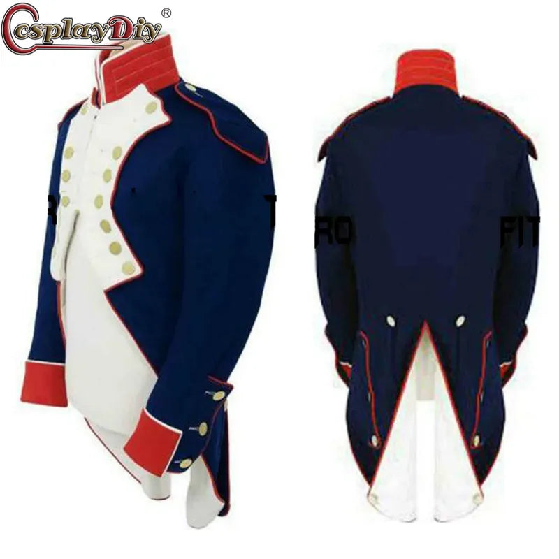 - Historisches Design: Der Schnitt orientiert sich an britischen Militäruniformen der Napoleonzeit mit prachtvoller Knopfleiste und aufwendig gearbeiteten Schulterdetails.