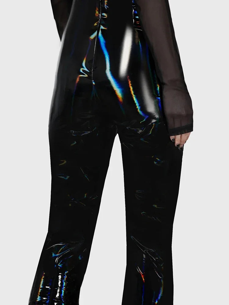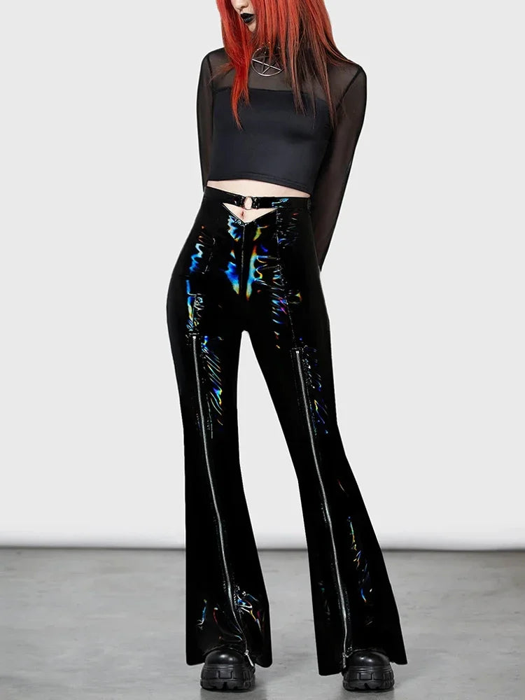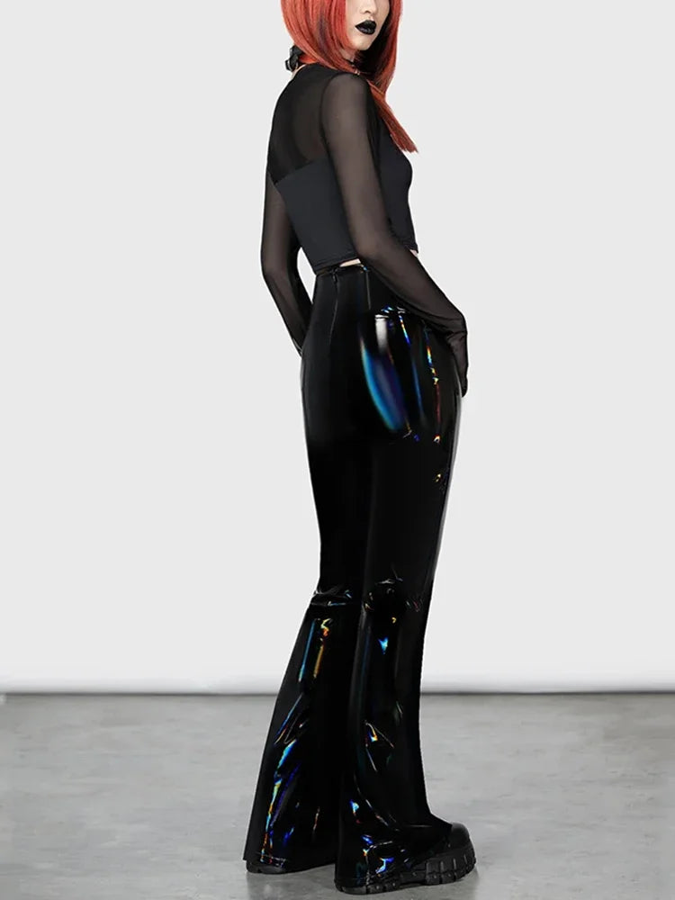 Gothic High Waist Faux Latex Flare Pants für Damen