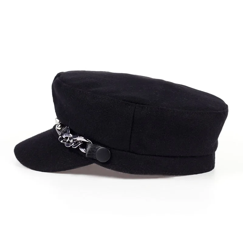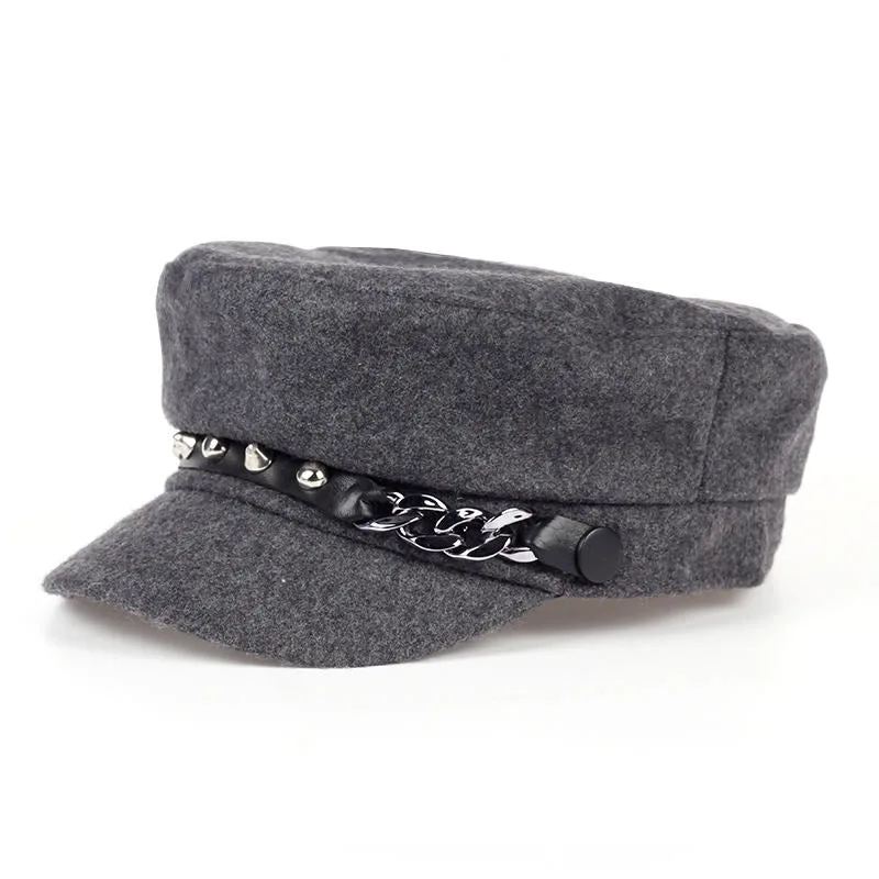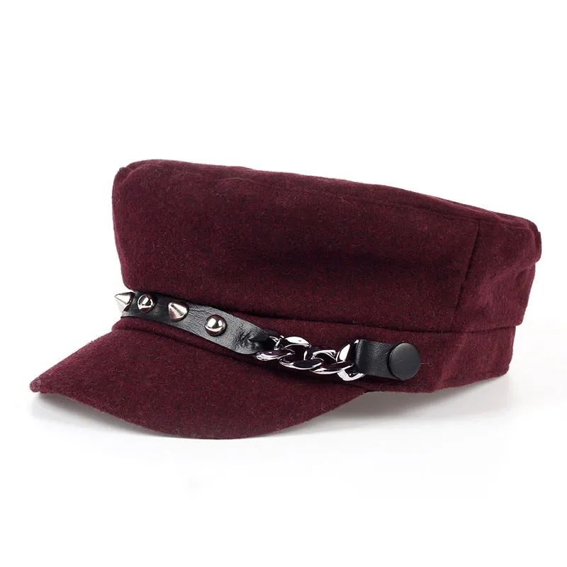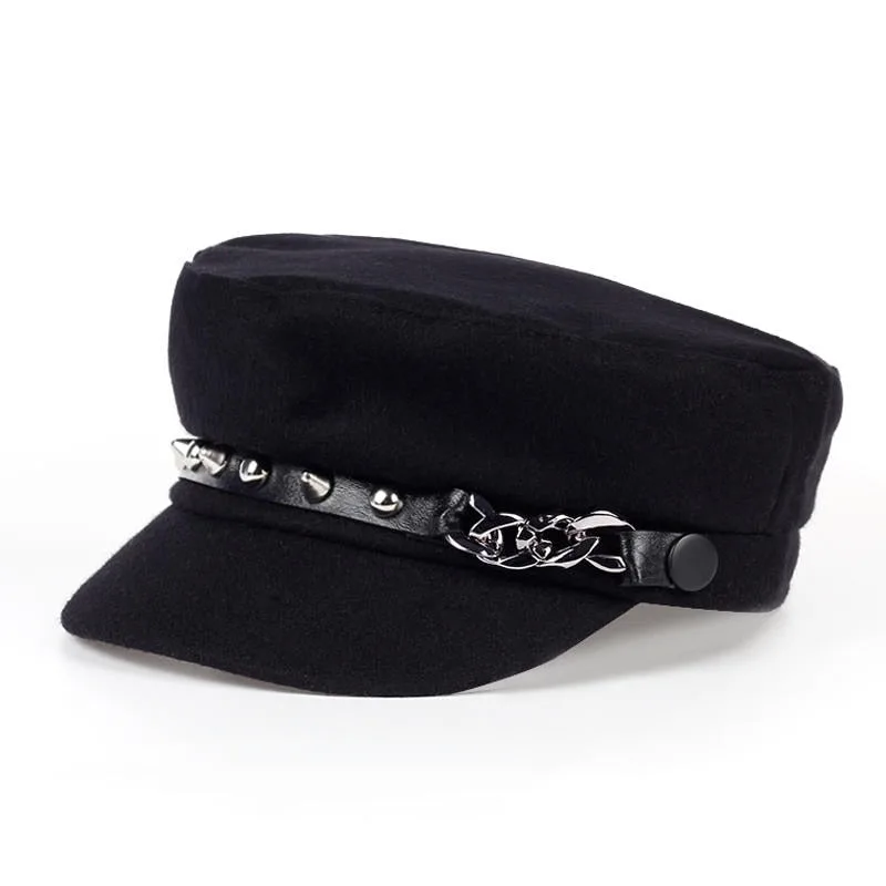 - Eleganter Stil: Verziert mit Nieten und einer Kette an der Seite, ist diese Kappe perfekt für einen modernen, edgy Gothic-Look.