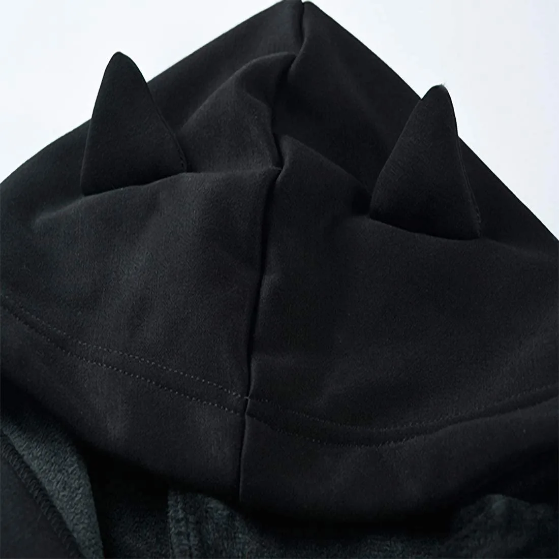 Sichern Sie sich unseren einzigartigen Gothic Katzenohren Kapuzenpullover und verleihen Sie Ihrer Garderobe einen Hauch dunkler Eleganz. Perfekt für Fans des Gothic-Stils und alle, die sich von der Masse abheben möchten!