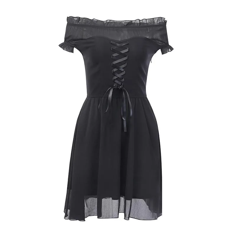 Sichern Sie sich das Gothic Kleid Freie Schulter und setzen Sie ein Statement auf jeder Party oder in Ihrem Alltag. Dieses Kleid ist die perfekte Wahl für jeden, der den Gothic-Stil mit Eleganz verbinden möchte!