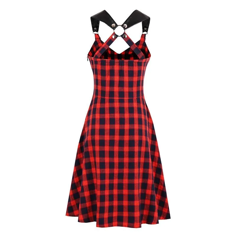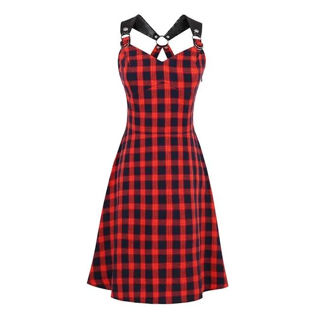 Entdecken Sie unser Gothic Kleid Rot, eine faszinierende Mischung aus klassischem und modernem Gothic-Stil. Dieses Kleid mit seinem rot-schwarzen Karo-Muster und den Kunstlederträgern verleiht Ihrem Look eine elegante und zugleich rebellische Note. Perfekt für Alltag und Abendveranstaltungen, ist dieses Gothic Kleid Rot ein Must-Have für Ihre Garderobe.
