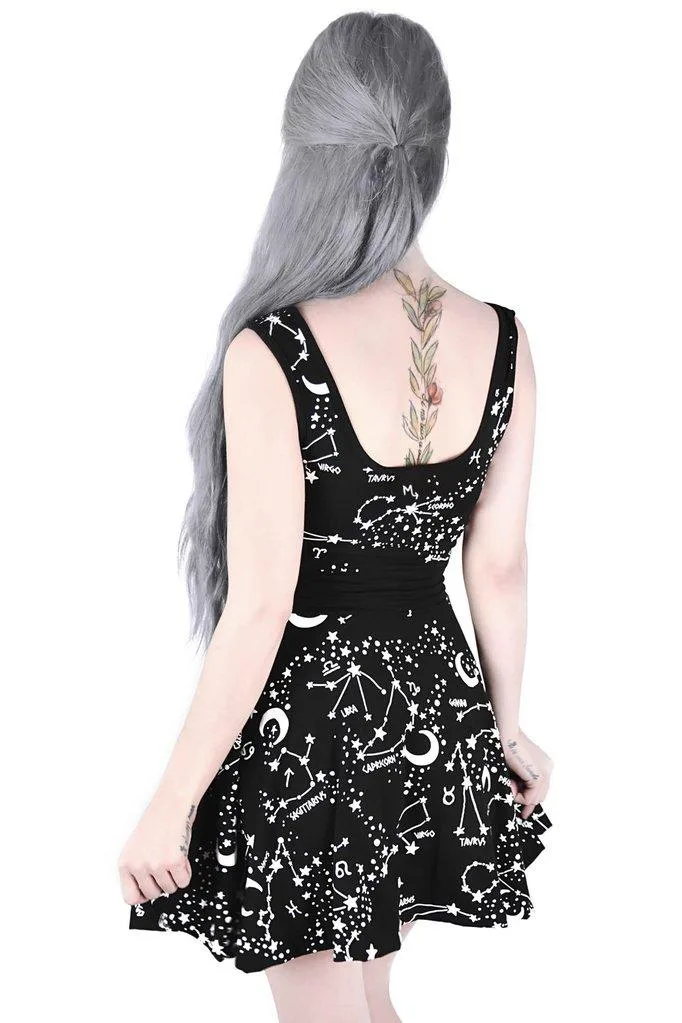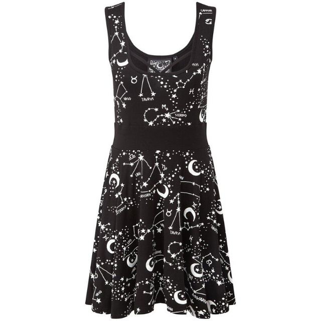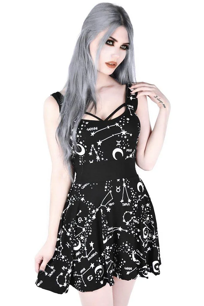 Entdecken Sie unser Gothic Kleid Schickes „Milky Way“, das ideale Kleid für Liebhaber des Gothic-Chic. Mit seinem auffälligen weißen Konstellationsdruck auf schwarzem Hintergrund bringt dieses Designerstück die Schönheit des Sternenhimmels direkt in Ihre Garderobe. Perfekt für den Alltag oder Nachtveranstaltungen, verleiht dieses Kleid Ihrem Stil eine kosmische Eleganz.