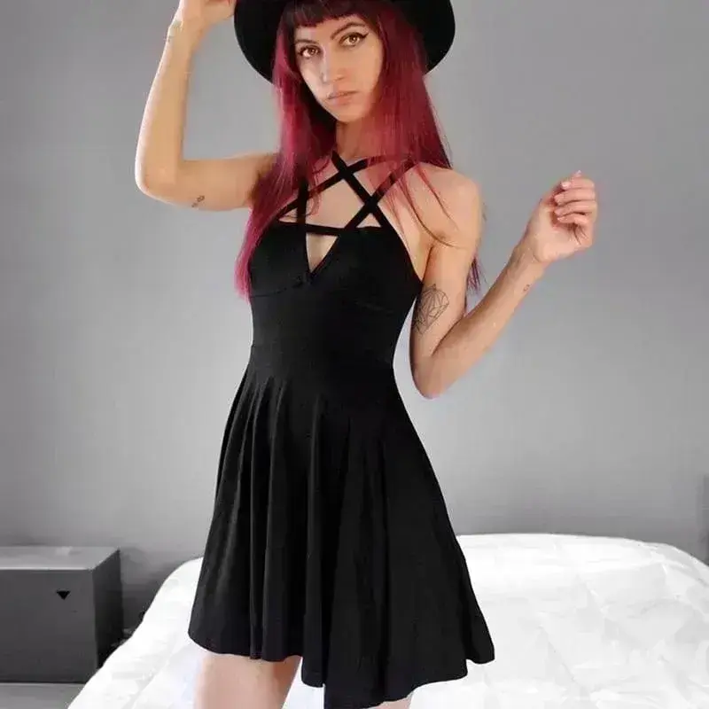 • Design: Ärmelos, mit umgekehrtem Pentagramm-Detail an den Trägern und einem dezenten Ausschnitt