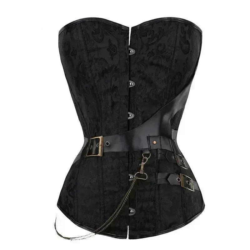 Entdecken Sie unser Gothic Korsett Top, das perfekte Kleidungsstück für all jene, die den düsteren und romantischen Gothic-Look lieben. Hergestellt aus hochwertigen Materialien wie Polyester und Elasthan mit dekorativen Lederdetails, verleiht dieses Oberteil Ihrer Silhouette eine perfekte Betonung an Brust und Taille. Ob für ein elegantes Abendessen, einen schicken Abend oder einen lässigen Stadtbummel – das Gothic Korsett Top ist vielseitig einsetzbar und sorgt garantiert für bewundernde Blicke.
