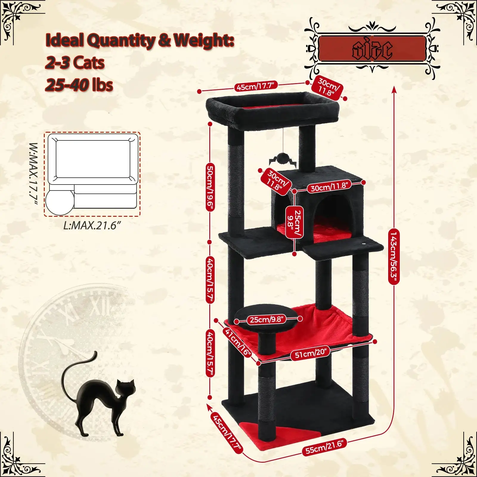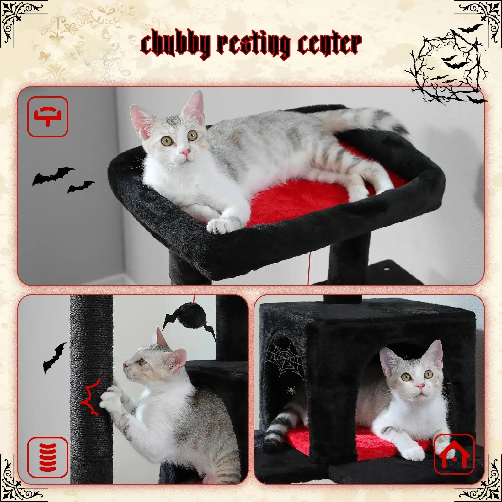 Gothic Kratzbaum für 2-3 Katzen mit Hängematte und Höhle