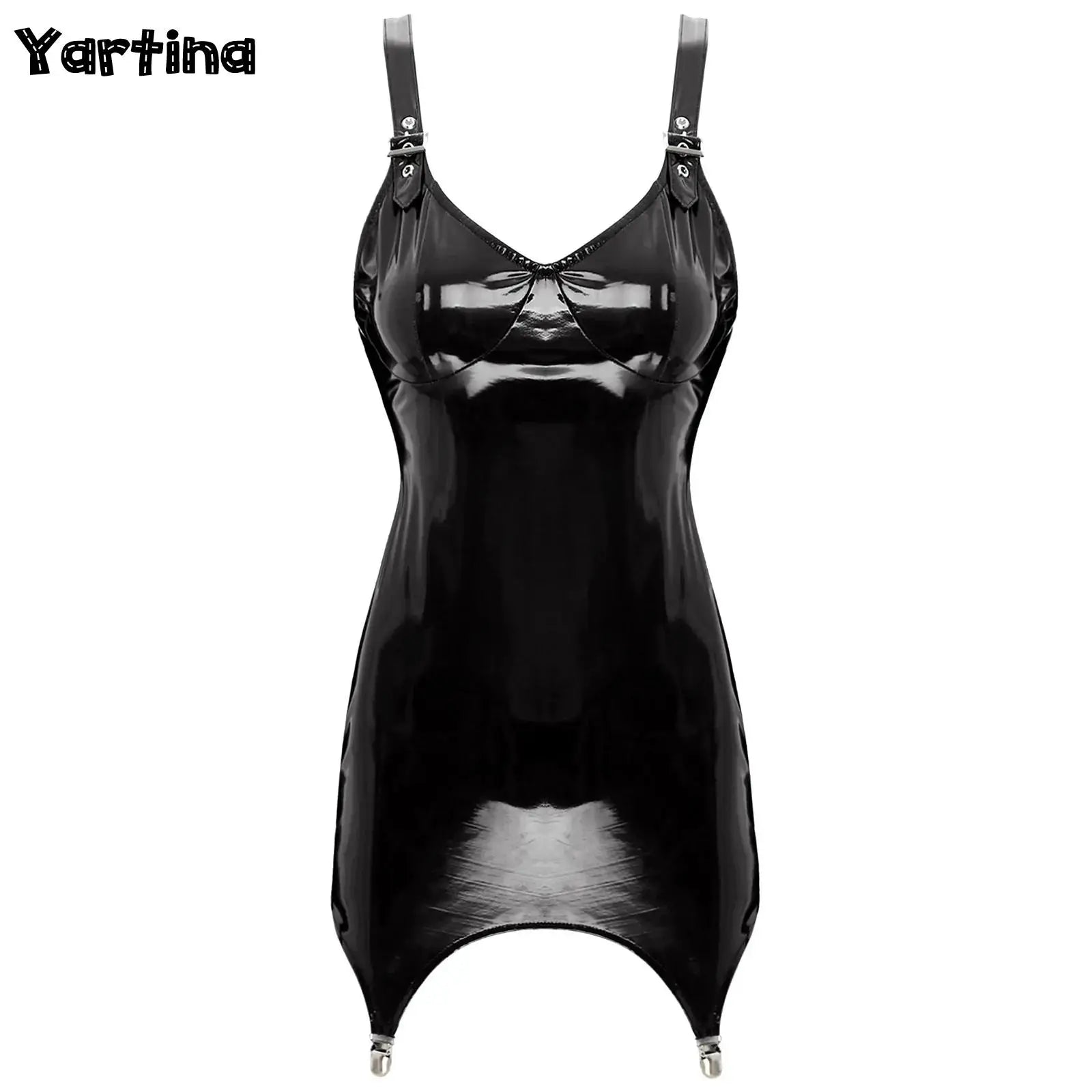 Entdecken Sie unser Gothic Latex Bodycon Minikleid mit Strapsen und Glanz, das ultimative Stück für alle Liebhaberinnen der Gothic Fashion Dresses mit einer Vorliebe für kühne, sexy Statements. Dieses enganliegende Minikleid kombiniert glänzendes Latex-Design mit provokanten Details wie verstellbaren Trägern und Strapsen – ideal für durchtanzte Partynächte, erotische Begegnungen oder Fetisch-Events!