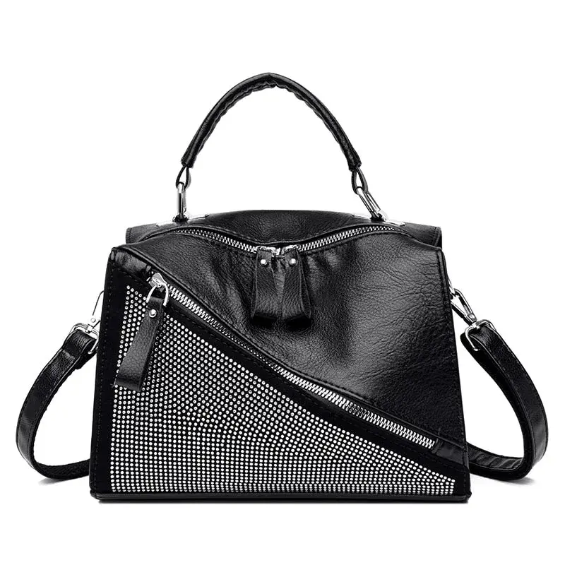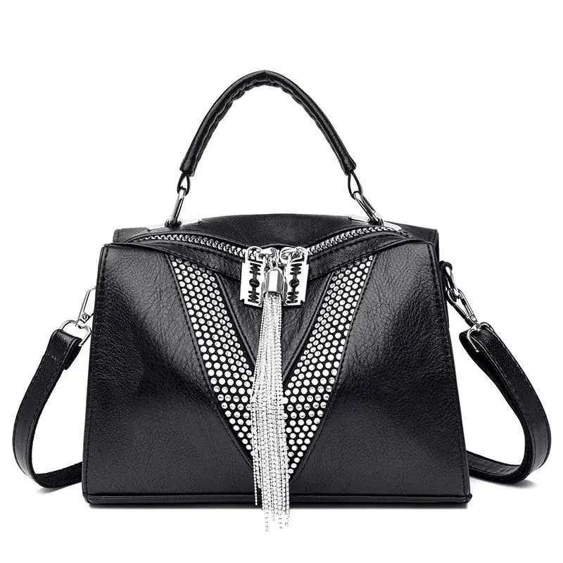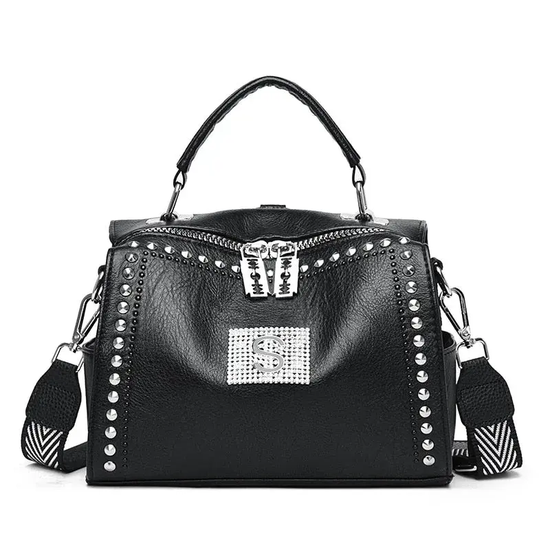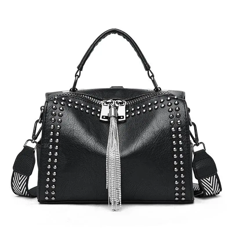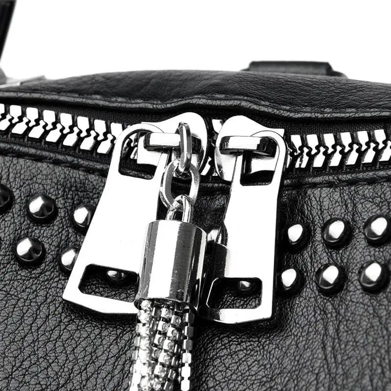 • Punkrock-Akzente: Die Tasche ist mit stilvollen Silberketten und Nieten verziert, die einen starken, femininen und rockigen Look verleihen.