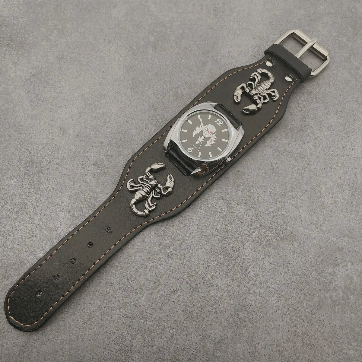 Entdecke die gothic Lederuhr mit 3D Skorpion-Schädel – perfektes Accessoire für Halloween und Punk-Rock-Looks!
