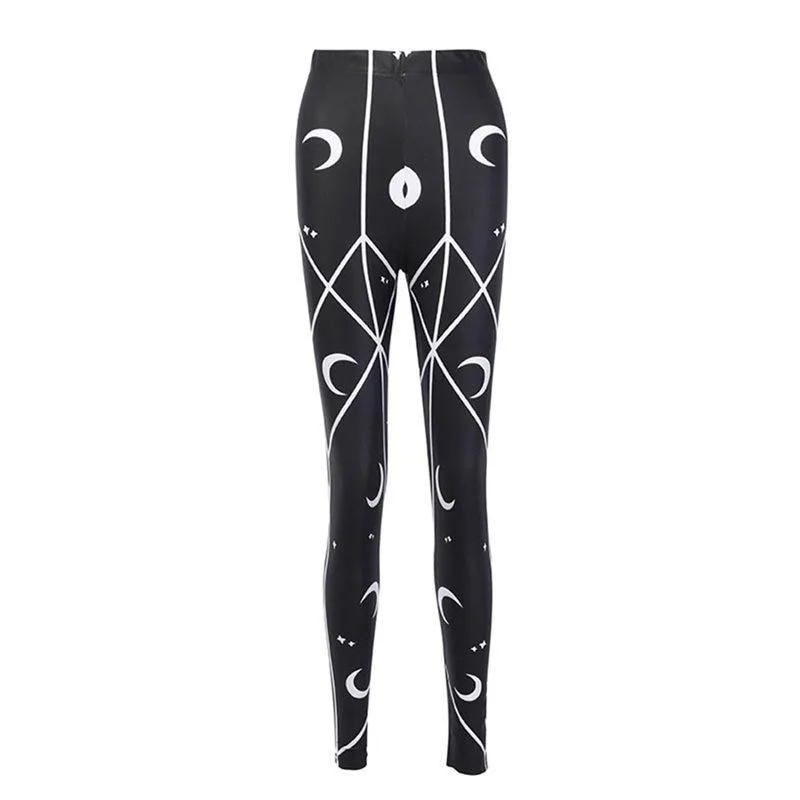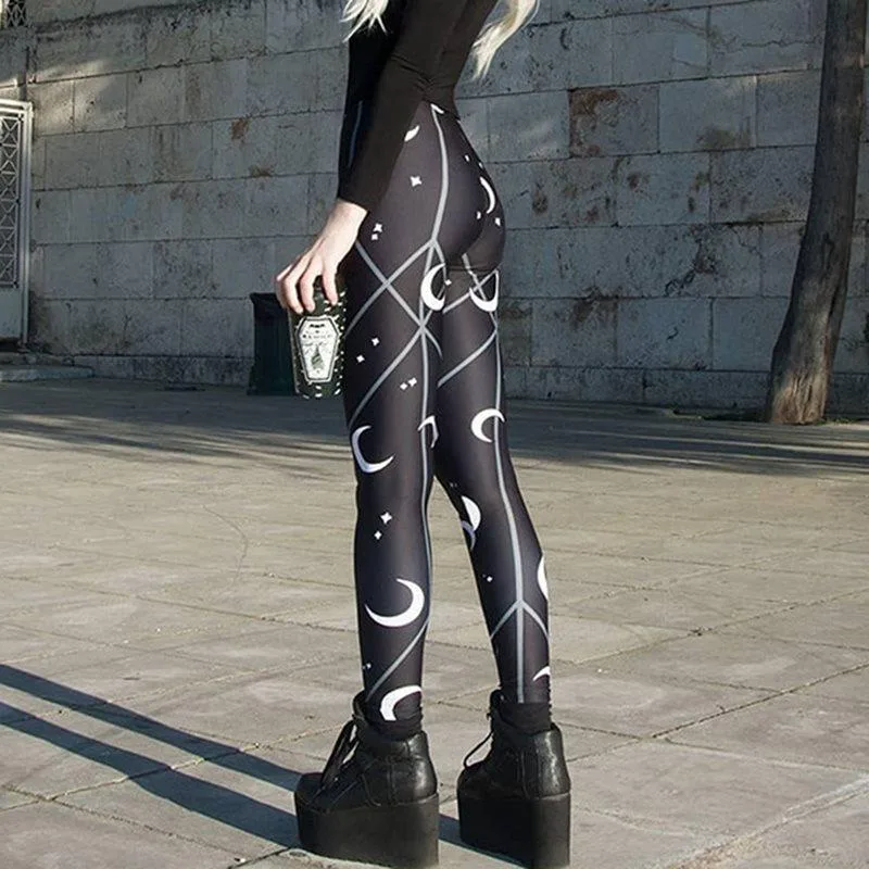 Entdecke die stilvollen Gothic Leggings mit geheimnisvollem Monddruck – perfekt für deinen alternativen Look. Bequem, einzigartig und trendy!