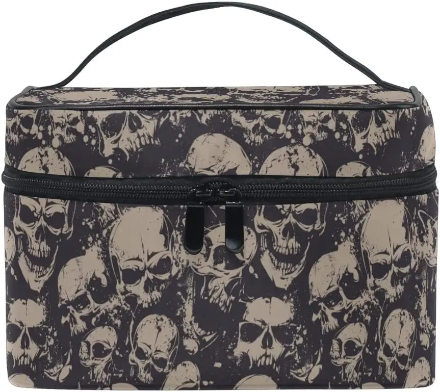 Gothic Makeup Bag mit Totenköpfen – Reisetäschchen Damen