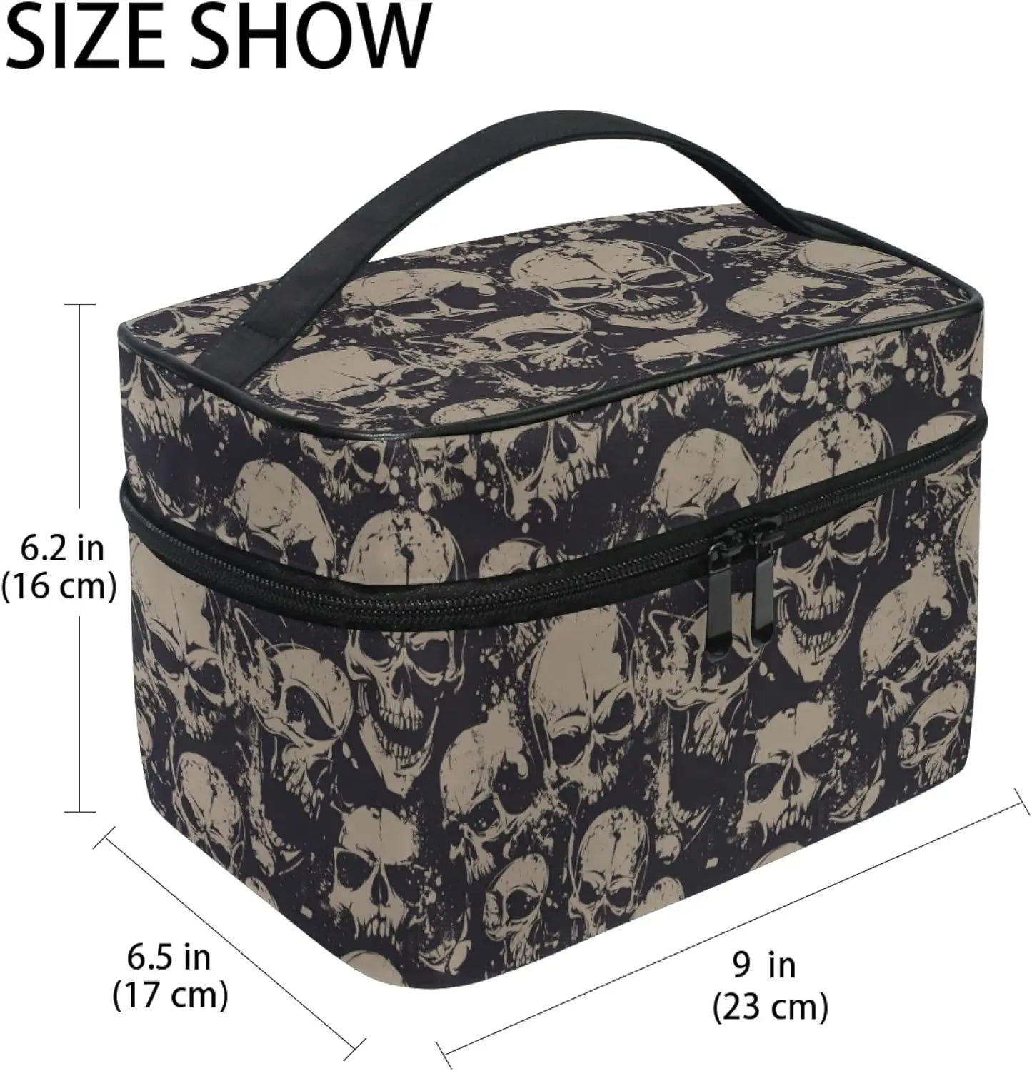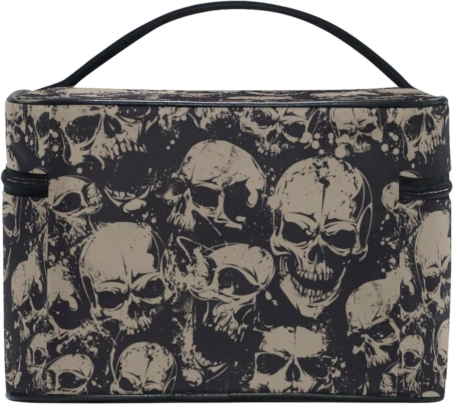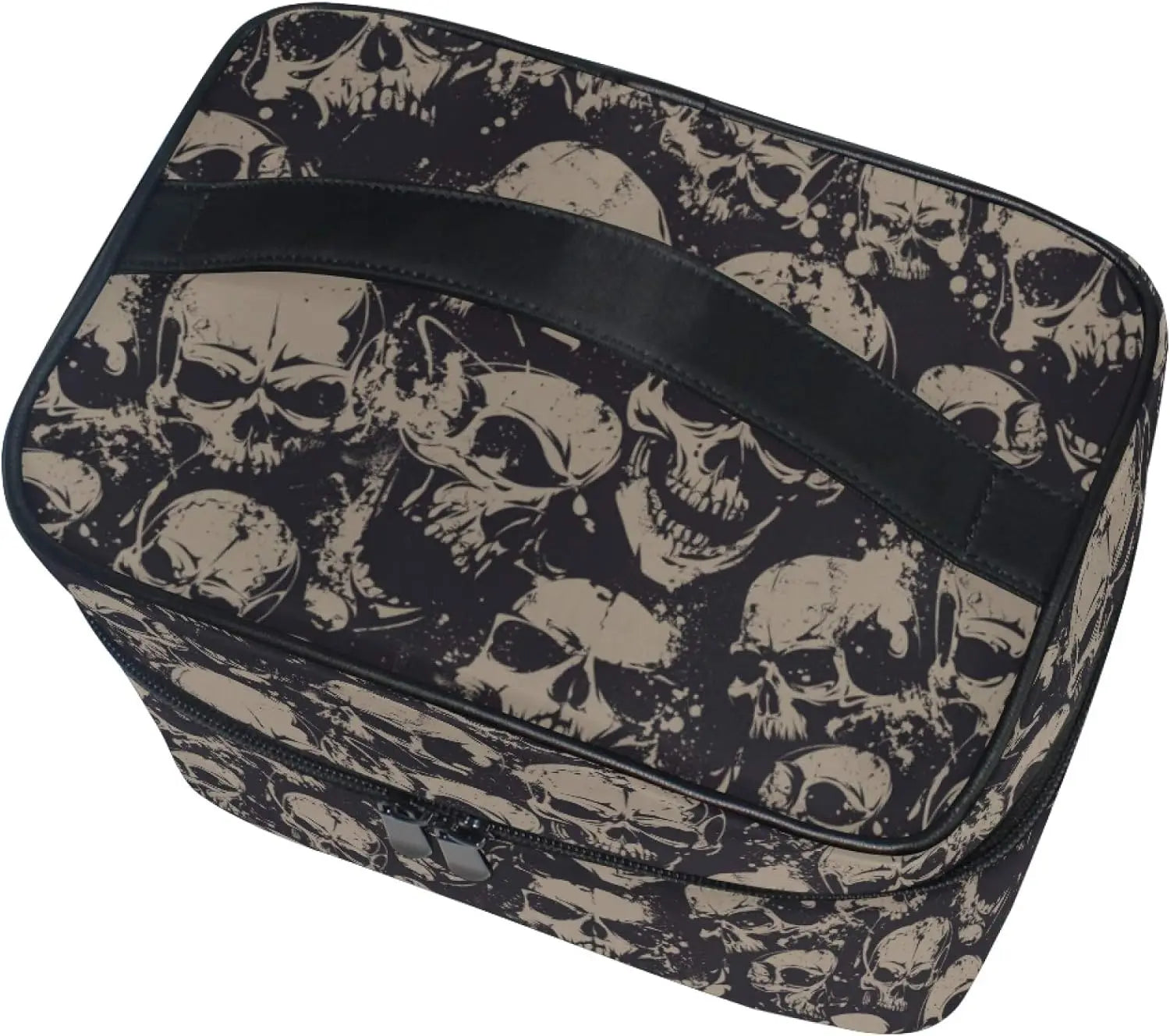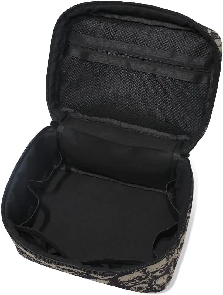 Entdecken Sie unsere Gothic Makeup Bag mit Totenköpfen – Reisetäschchen Damen, die perfekte Kosmetiktasche für Liebhaberinnen des düsteren und extravaganten Gothic-Stils. Ob auf Reisen, zu Hause oder unterwegs – diese einzigartige Tasche vereint Funktionalität mit einem auffälligen, alternativen Design. Die stylischen Totenkopf-Motive und die praktische Boxform machen sie zum unverzichtbaren Begleiter für alle, die auch beim Make-up-Transport Wert auf Ästhetik legen.