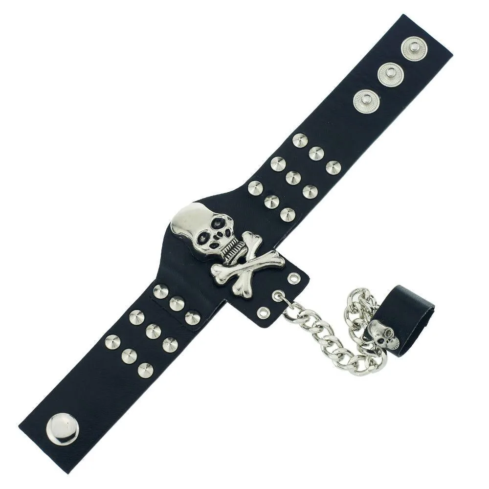 Entdecken Sie das beeindruckende Gothic Manschettenarmband, ein perfektes Accessoire für alle, die den rebellischen Gothic- und Punk-Look lieben. Gefertigt aus hochwertigem Kunstleder und verziert mit metallischen Nieten und einem markanten Totenkopf-Design, ist dieses Armband ein absoluter Hingucker. Ob für den Alltag, Festivals oder Halloween – dieses Gothic Manschettenarmband unterstreicht Ihren individuellen Stil.