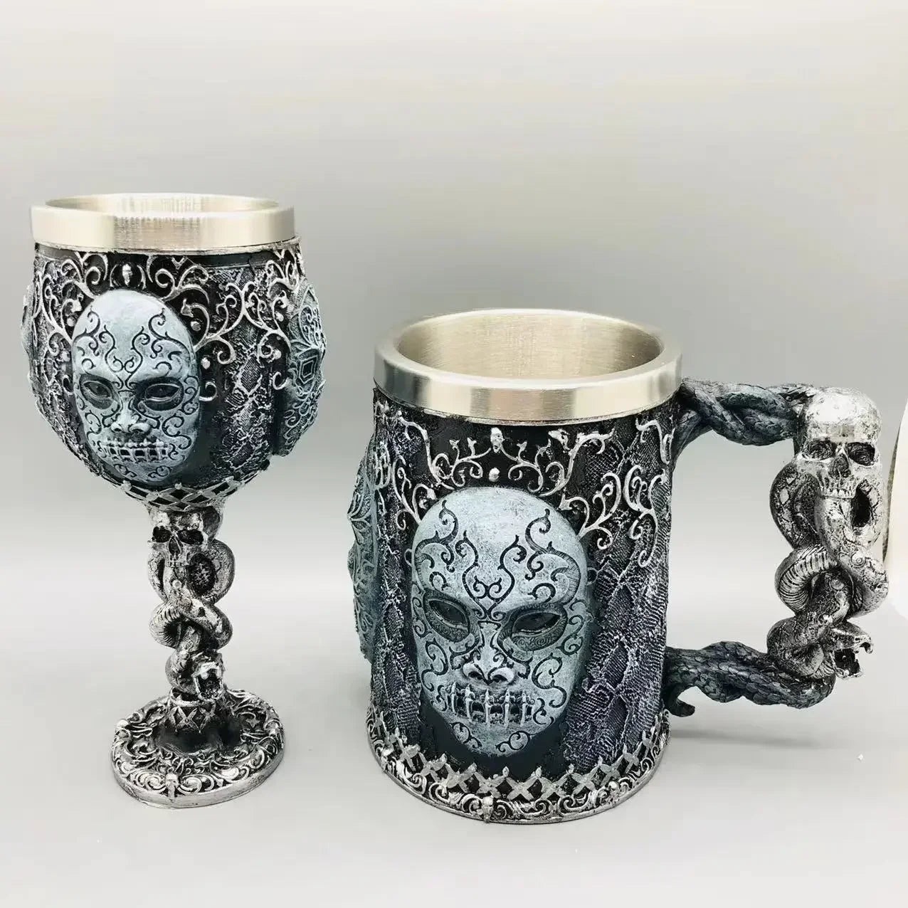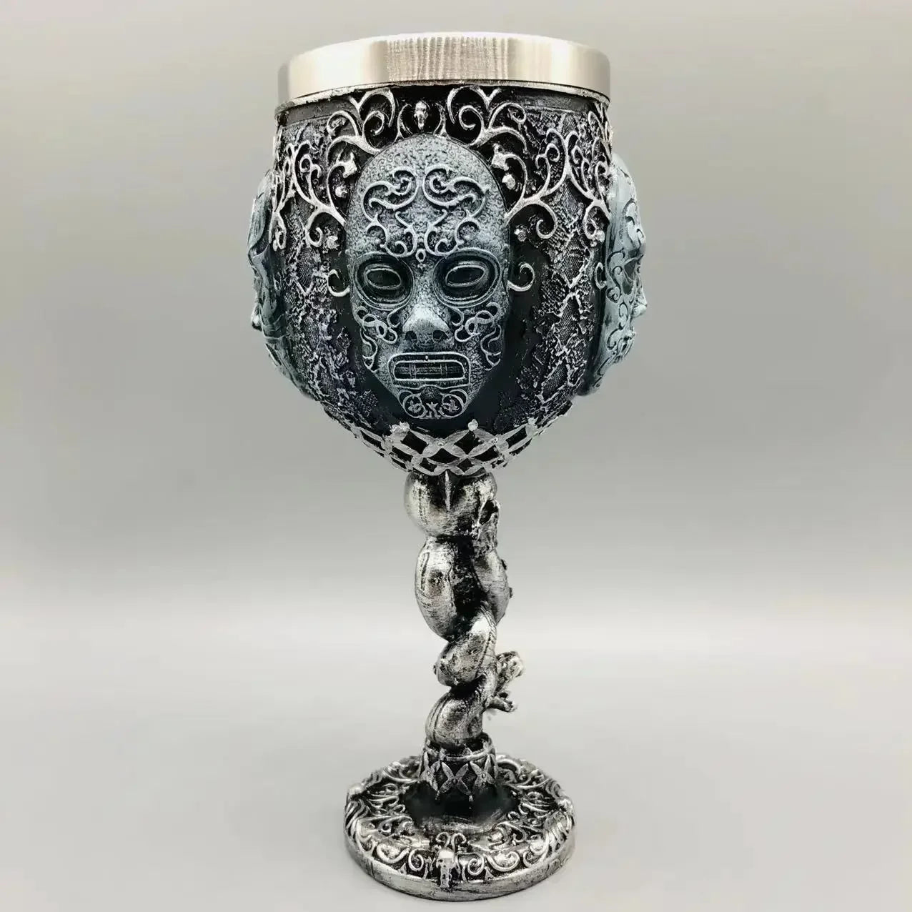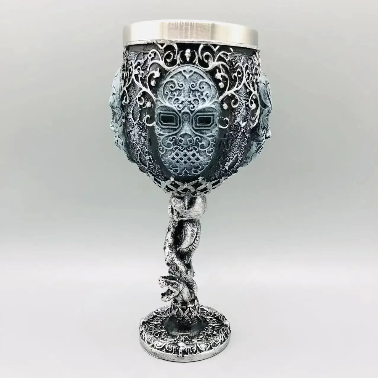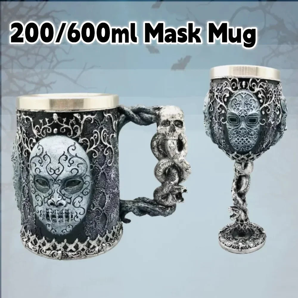 - Einzigartige Optik: Die detailreiche Maske mit Schlangenornament verleiht diesem Becher eine markante und magische Ausstrahlung.