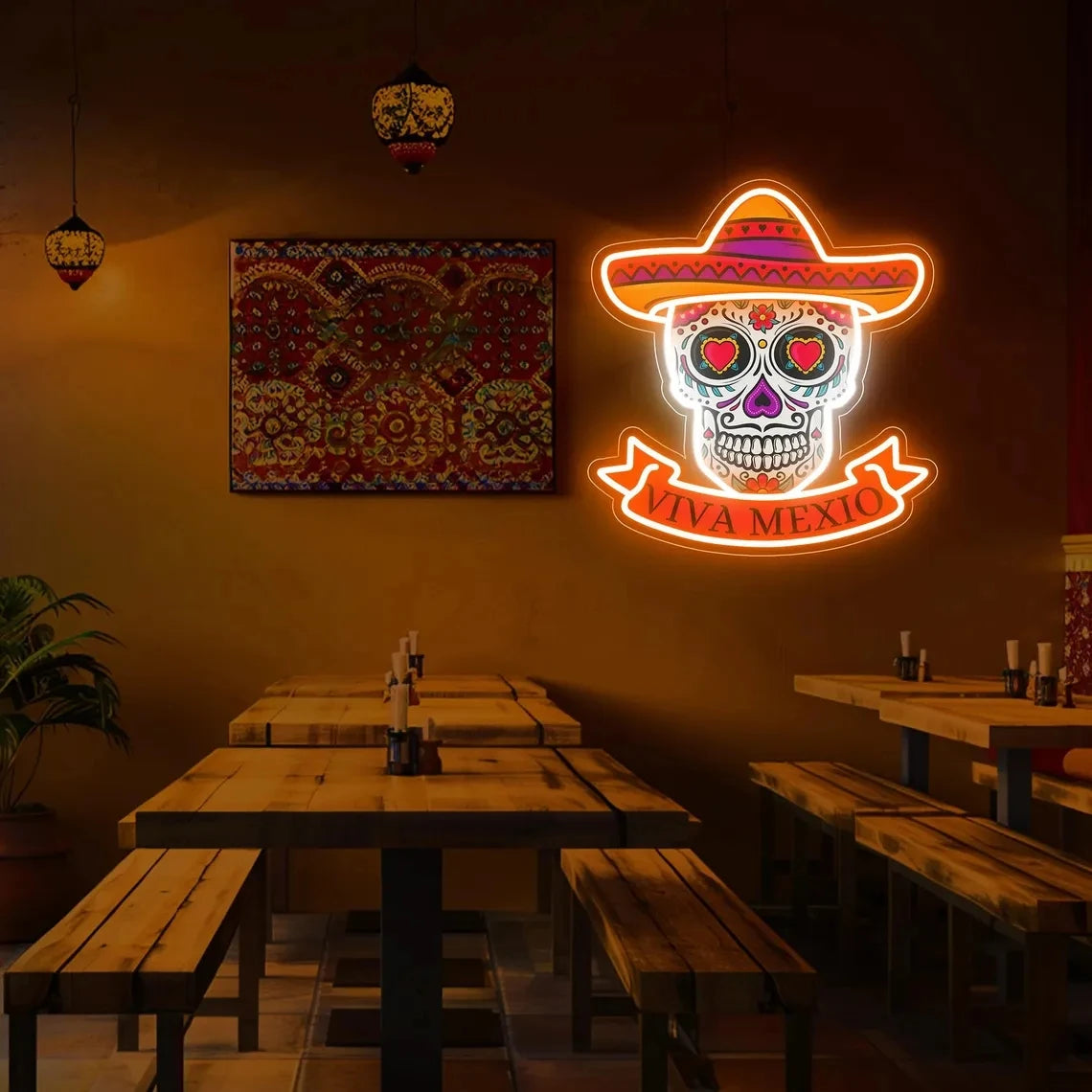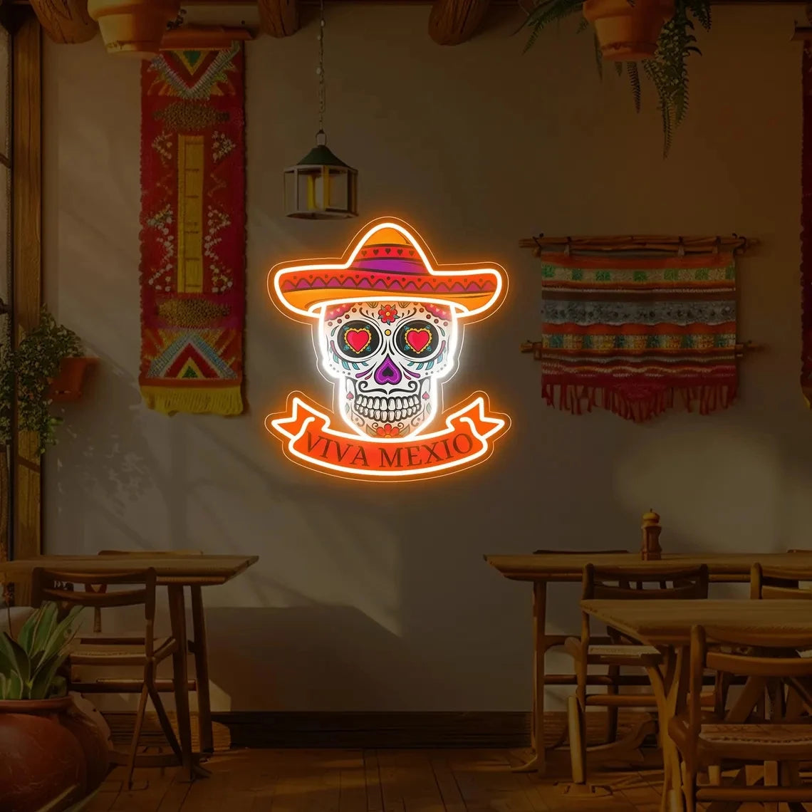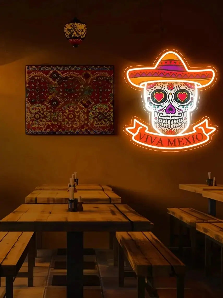 Entdecken Sie das eindrucksvolle Gothic Mexico Skull LED Neon Sign mit mexikanischem Hut – ein dekoratives Highlight, das traditionelle Totenkopf-Motive mit moderner LED-Technologie verbindet. Dieses leuchtende Kunstwerk ist perfekt für Liebhaber von gothic-inspirierter Raumdekoration und bringt eine einzigartige, mystische Atmosphäre in jedes Zimmer. Ob als Wandkunst für Ihr Wohnzimmer, zur stimmungsvollen Beleuchtung im Schlafzimmer oder als Blickfang für Events – dieses LED-Leuchtschild ist ein wahrer Eyecatcher.