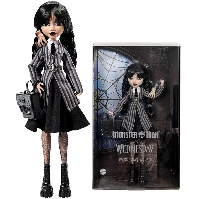 Entdecken Sie unsere einzigartige Gothic Monster High Wednesday Puppe mit Zubehörset, das ultimative Sammlerstück für Fans von Gothic-Ästhetik und der legendären Addams-Familie. Diese detailreiche Fashion-Puppe im ikonischen Look von Wednesday Addams ist ideal für Gothic-Liebhaber, Sammler und kreative Kinder, die mit Stil spielen wollen. Komplett mit Schuluniform im Nevermore-Stil, Rucksack, Thing-Handaccessoire und vielen weiteren Gadgets ausgestattet, bietet diese Figur mehr als nur Spielspaß – sie ist ein visuelles Highlight.
