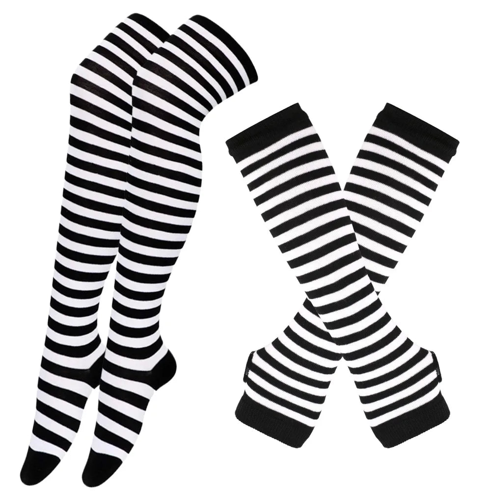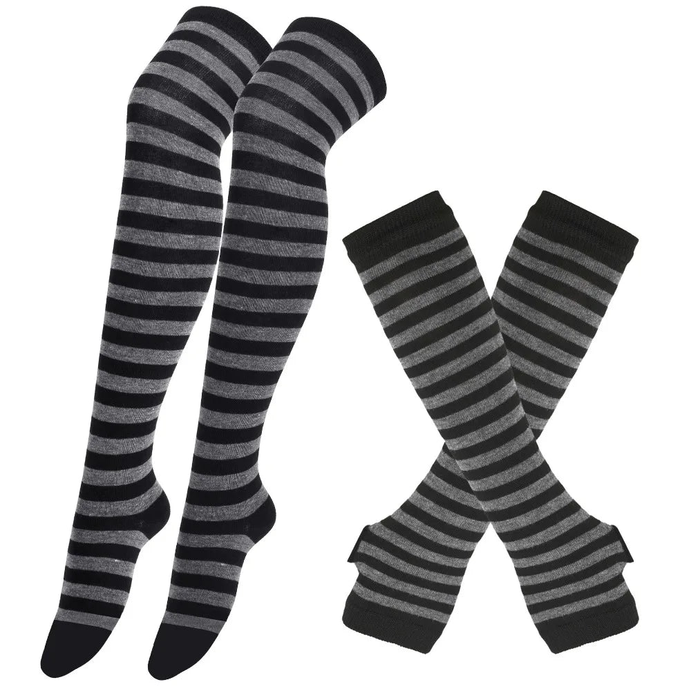 Entdecken Sie unser Gothic Overknee Socken & Armstulpen Set für Mädchen, das ultimative Accessoire für alle Liebhaberinnen des Gothic- und Harajuku-Stils. Mit seinem auffälligen Streifenmuster und der Kombination aus Overknee-Strümpfen und passenden Armstulpen verbindet dieses Set funktionale Wärme mit einem süß-verspielten, aber auch rebellischen Look. Egal ob für Halloween, Cosplay, Schuloutfits oder einfach für den Alltag im Gothic-Stil – dieses Produkt setzt Ihre Beine und Arme perfekt in Szene!