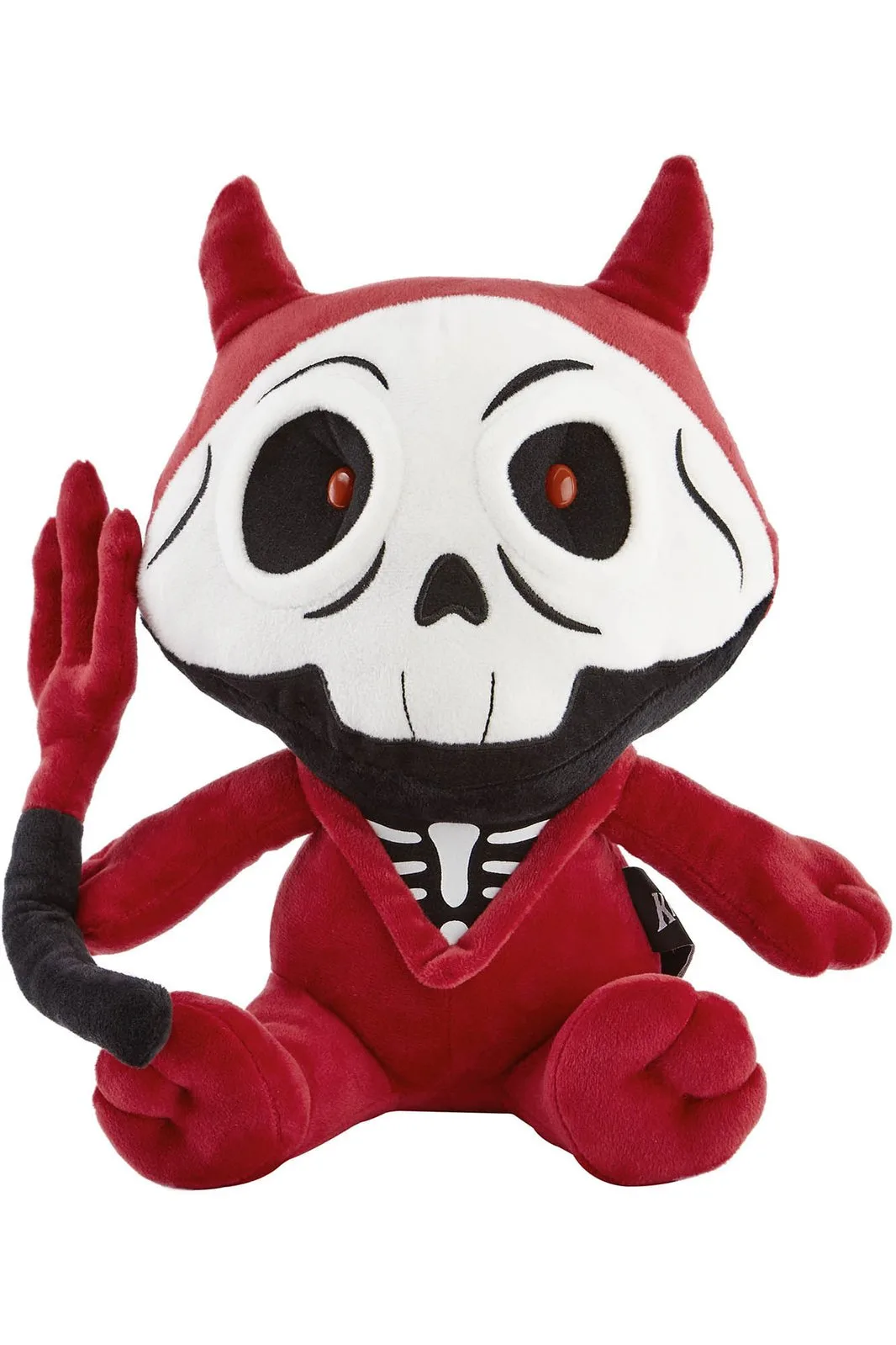 - Design: Dämonisch inspiriertes Plüschtier mit Hörnern, einem Schwanz und einer Mini-Heugabel.