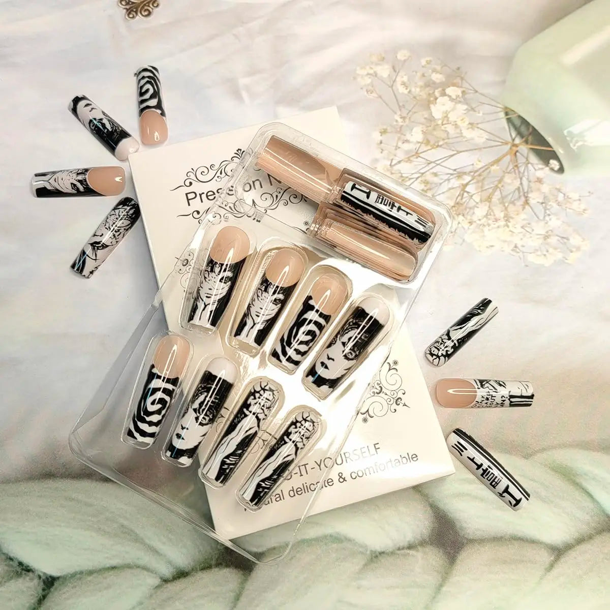 Gothic Press On Nails – Anime Design in Schwarz & Weiß