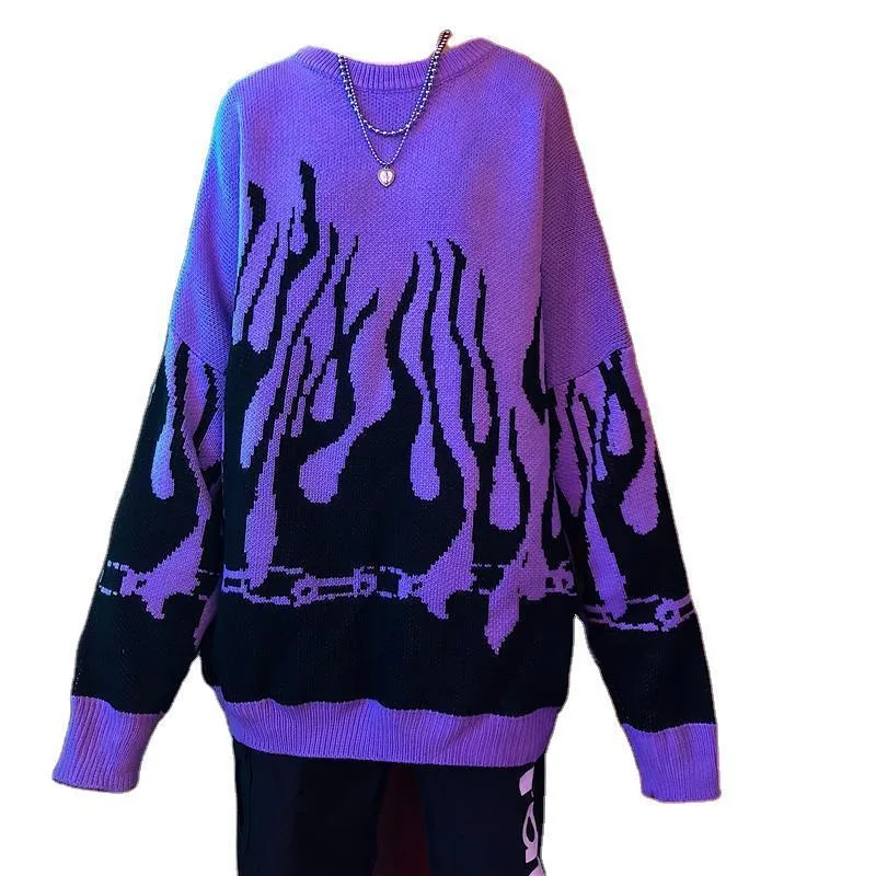 • Einzigartiges Design: Flammen- und Kettenmotive, perfekt eingestrickt, verleihen diesem Pullover eine unverwechselbare Ästhetik.