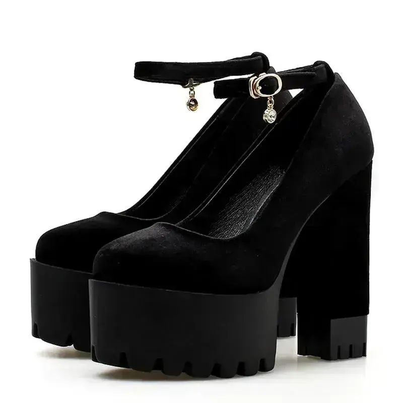 - Stil und Komfort: Dank des 14 cm hohen Absatzes bieten diese Schuhe sowohl Höhe als auch Stabilität, während die 5,5 cm Plateausohle für zusätzlichen Halt sorgt.