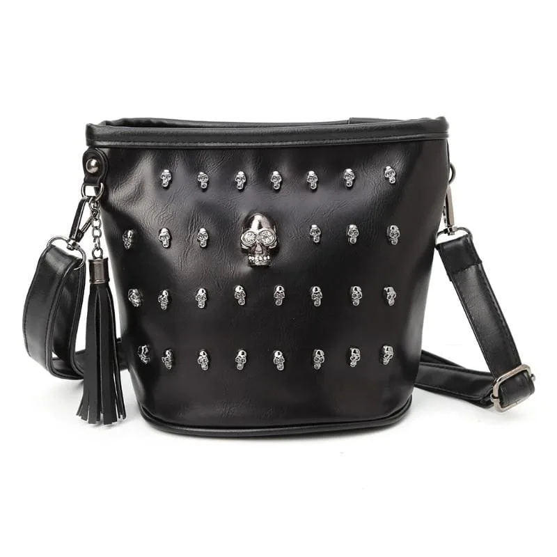 Entdecken Sie unsere Gothic Punk Handtasche, das perfekte Accessoire für alle, die den Gothic- und Punk-Look lieben. Hergestellt aus hochwertigem Kunstleder und Polyester, bringt diese Handtasche Eleganz und einen Hauch von Rebellion in Ihre Outfits. Ob romantisch, rockig oder sexy – diese Tasche passt perfekt zu jedem Ihrer Gothic-Outfits. Mit ihren einzigartigen Totenkopf-Details und einem trendigen Pompon-Anhänger ist die Tasche ein echtes Highlight für Ihren Look.