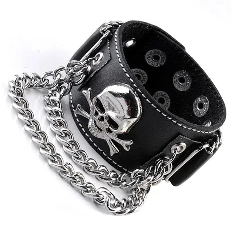 - Muster: Totenkopf und Ketten, verstärkt die wilde Ästhetik des Armbands