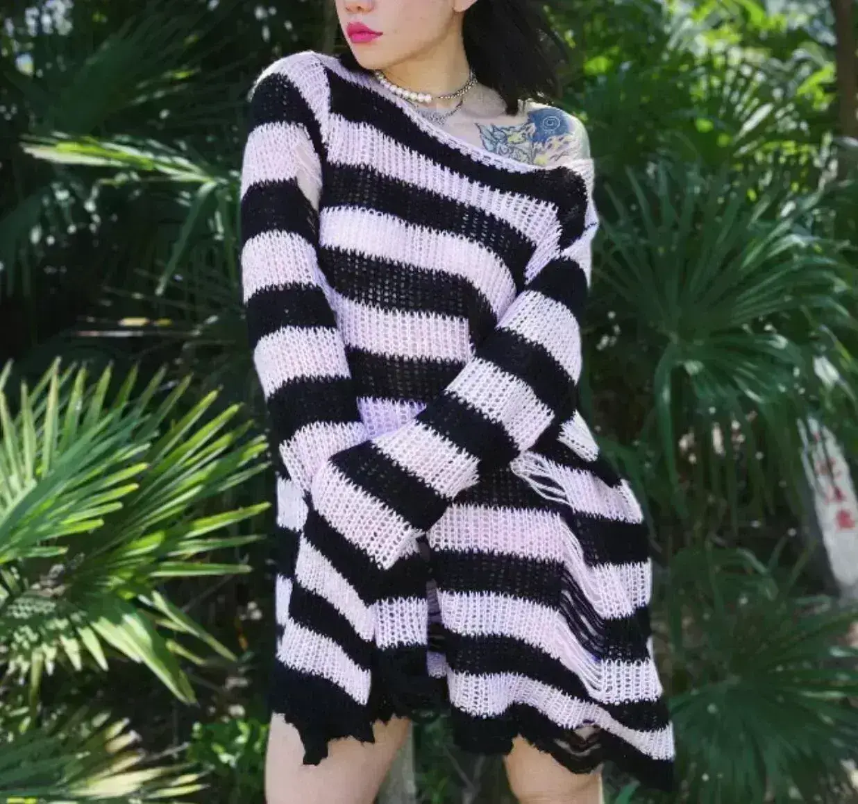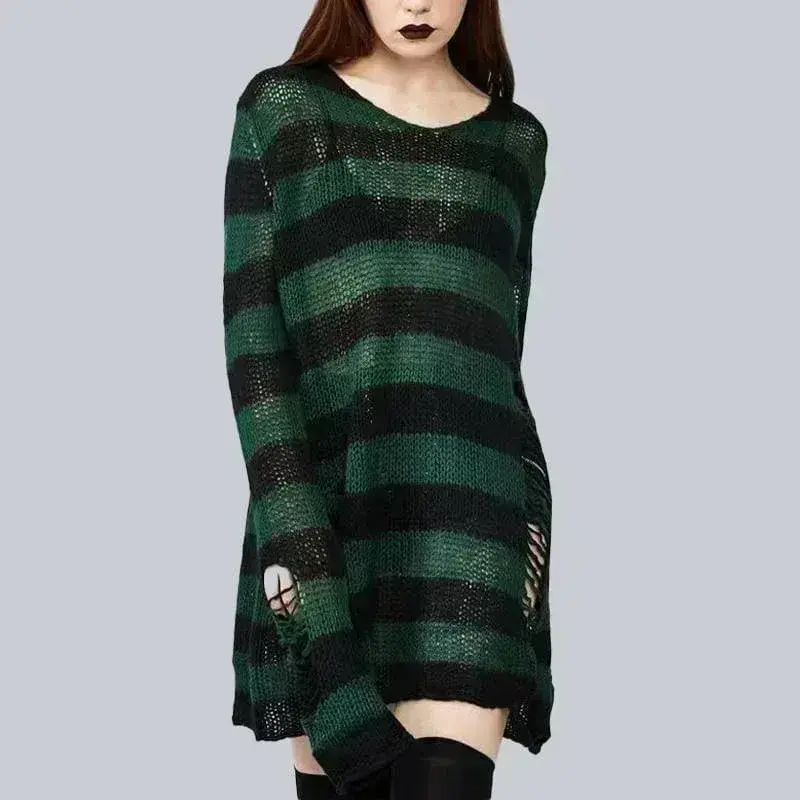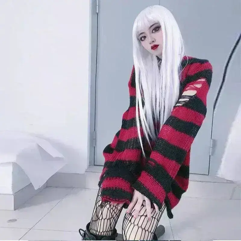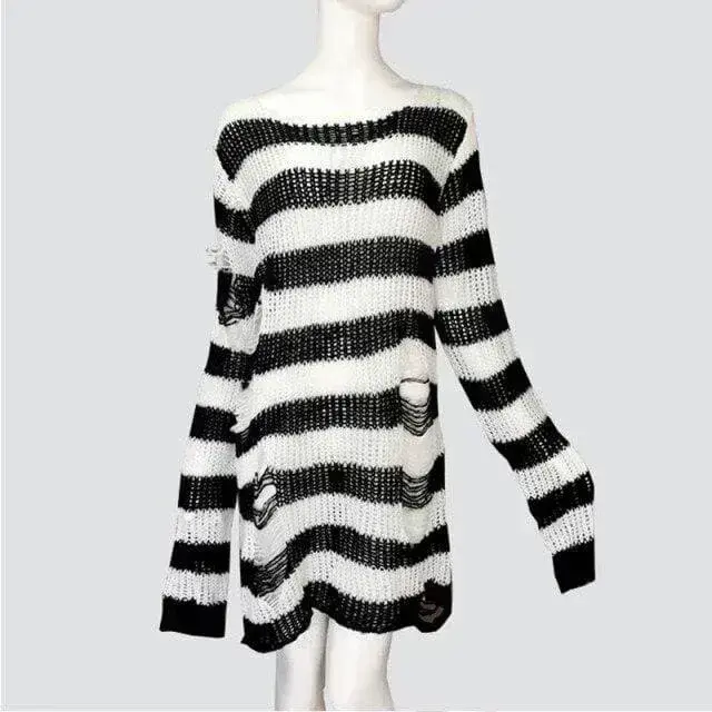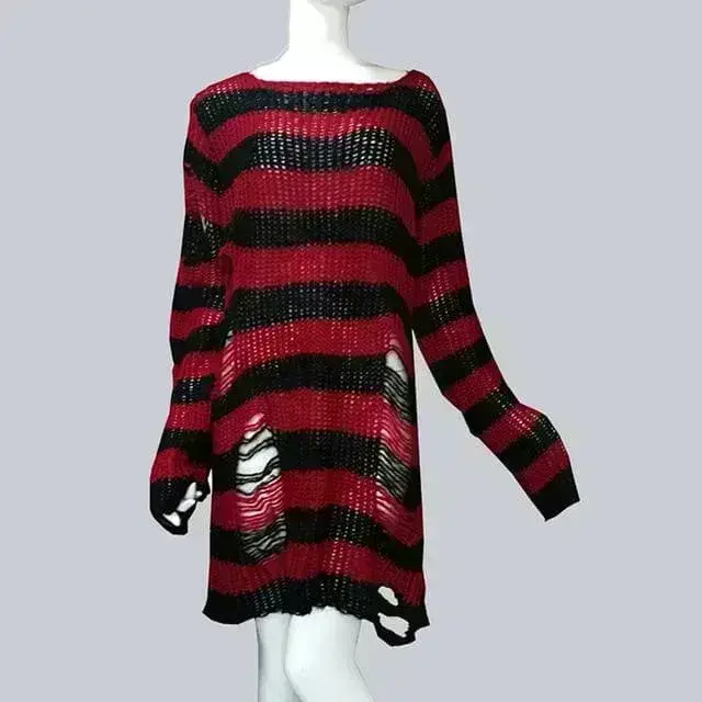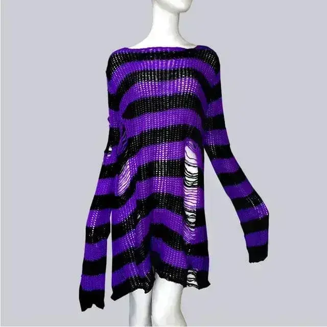 Oversize Gothic Punk Pullover – Perfekt für Festivals und Konzerte. Zerrissener Look, Grobstrick und zweifarbig. Stilvolles Design für alle Gelegenheiten!