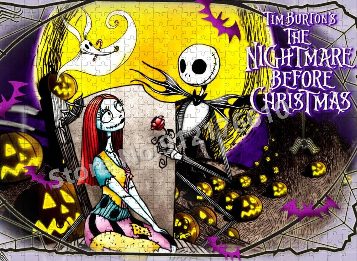 Entdecke das gothic Puzzle-Erlebnis mit Jack & Sally – 300/500/1000 Teile für Fans von The Nightmare Before Christmas!
