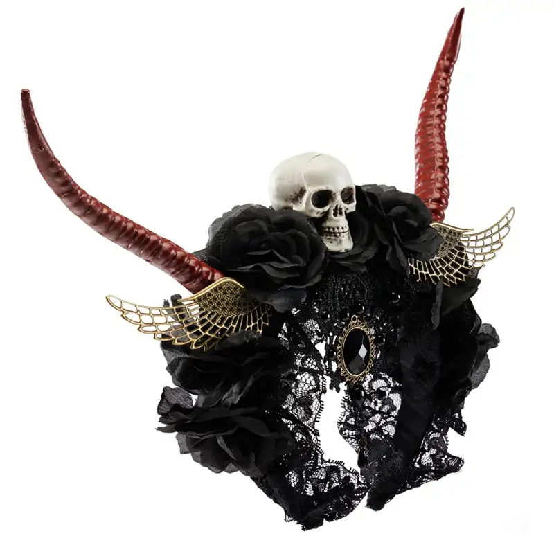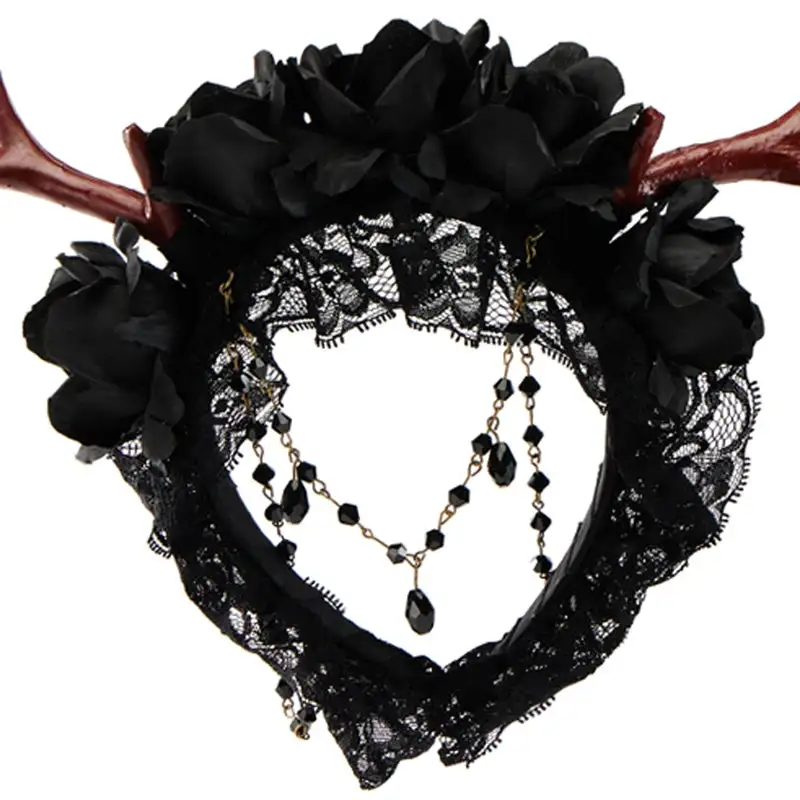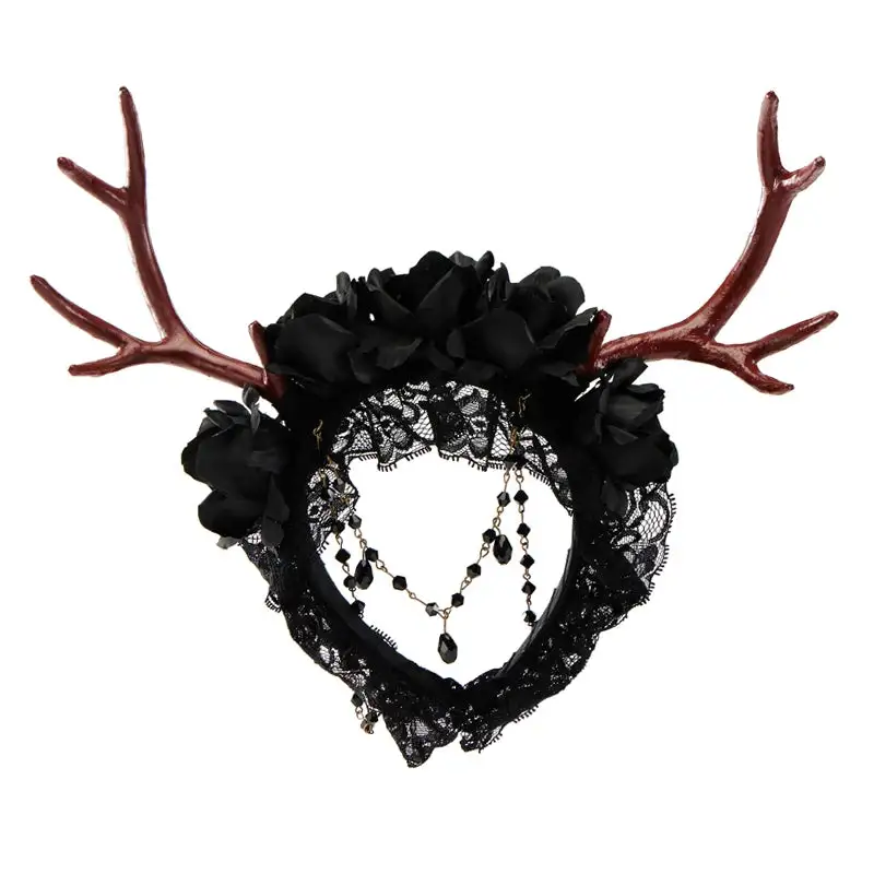 Setzen Sie ein Statement und kombinieren Sie den Gothic Rentier Haarreif mit Rosen und Kette – Retro Look mit einem raffinierten Outfit aus unserer Damen-Gothic-Kollektion, einem dramatischen Gothic Haarschmuck und passender Gothic Weihnachtsdeko für eine unvergessliche Erscheinung.