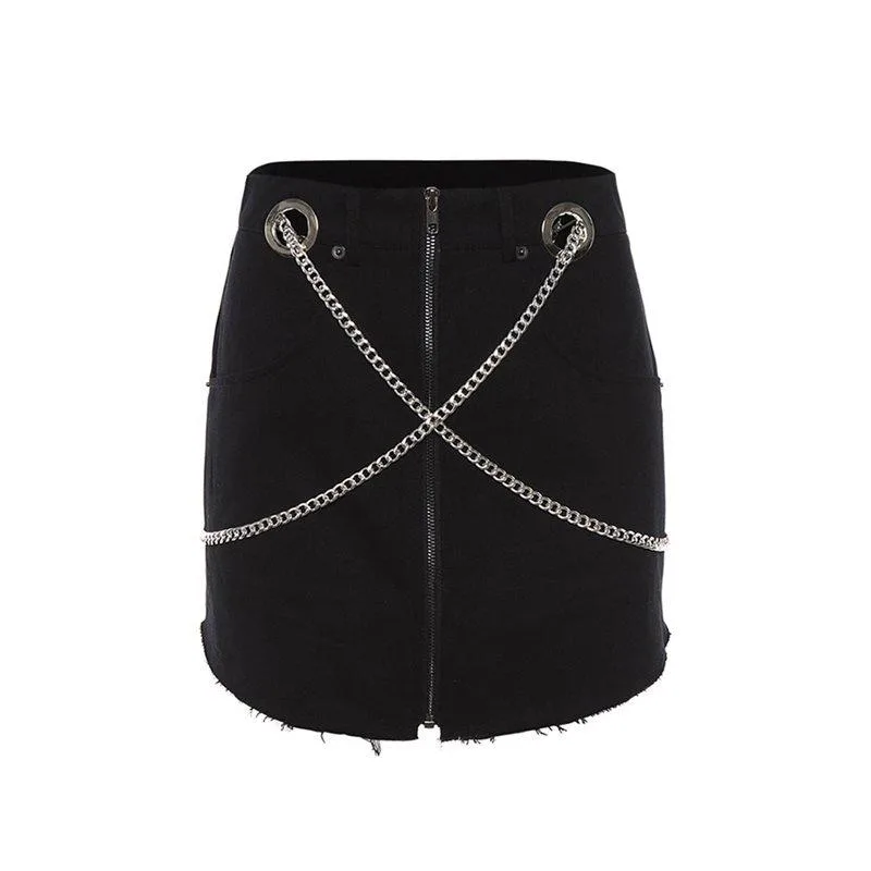 - Einzigartiges Design: Verziert mit Ketten und Metallringen, die den Rock zu einem absoluten Highlight machen.