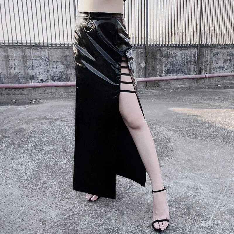 Entdecken Sie unseren Gothic Rock Langes Leder, ein unverzichtbares Kleidungsstück für alle Liebhaber des Gothic-Stils. Hergestellt aus hochwertigem Leder, kombiniert dieser lange Rock Eleganz und Rebellion für einen Stil, der sowohl modern als auch zeitlos ist. Perfekt für selbstbewusste Frauen, die ihren Look bei Alltag oder besonderen Abendveranstaltungen hervorheben möchten.