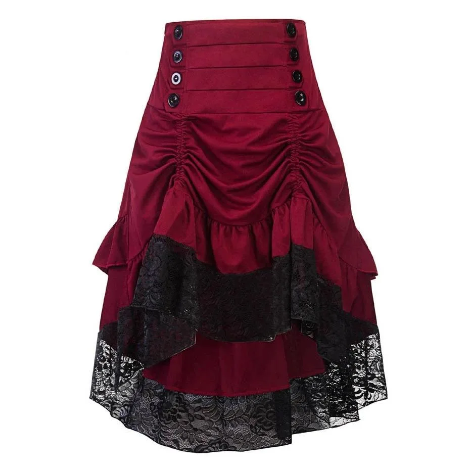 Entdecken Sie unseren Gothic Rock Viktorianisch, das perfekte Kleidungsstück für Liebhaber des Gothic-, Steampunk- und viktorianischen Stils. Dieser lange und fließende Rock vereint traditionelles Design mit einer modernen Note durch die verkürzte Vorderseite. Gefertigt aus hochwertigen Materialien wie Baumwolle und Polyester, ist er das ideale Highlight für den Alltag oder besondere Anlässe.