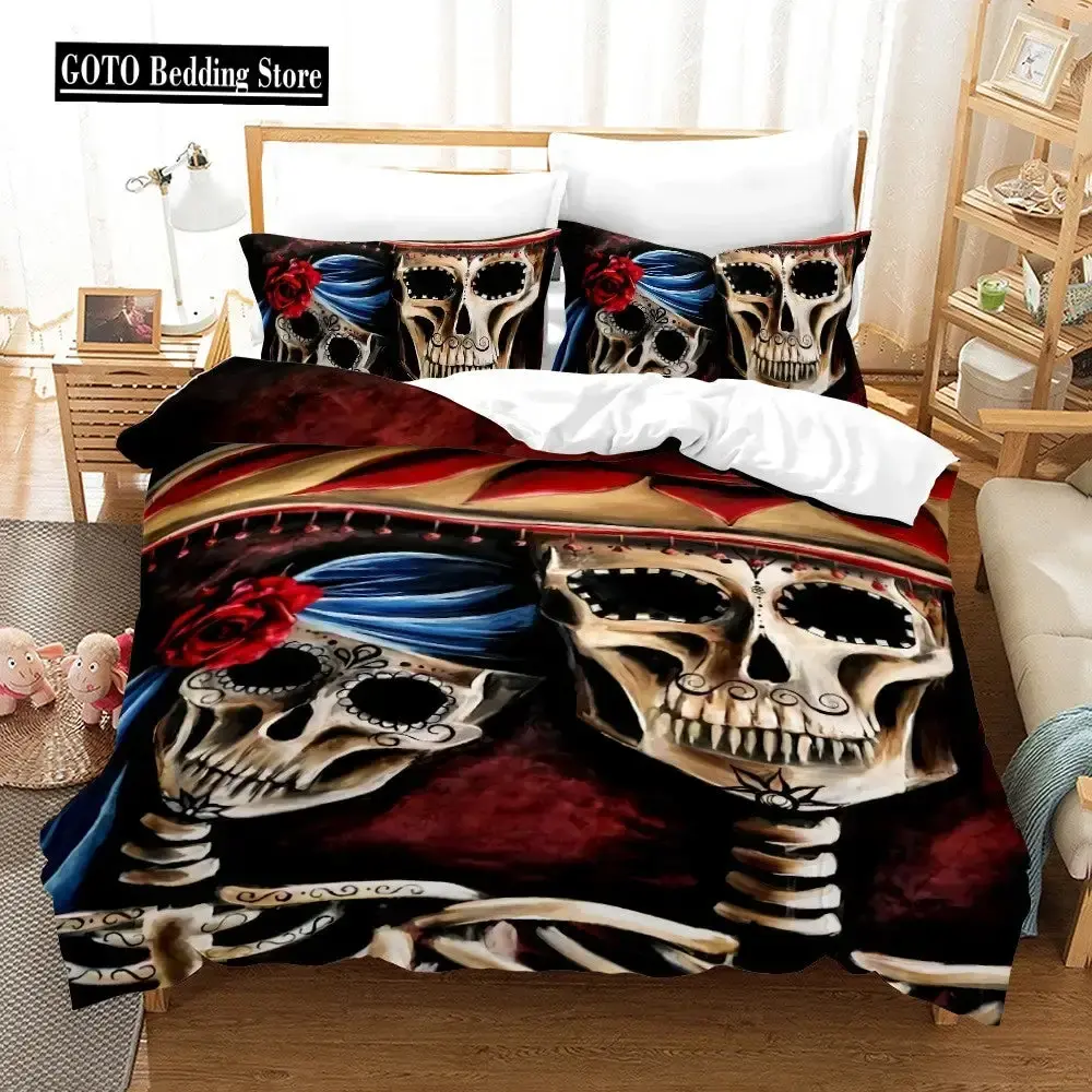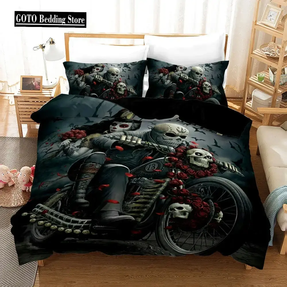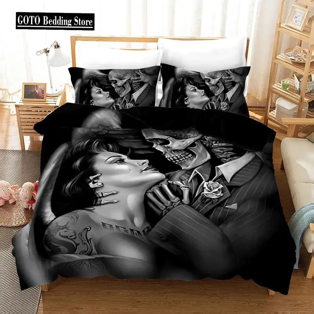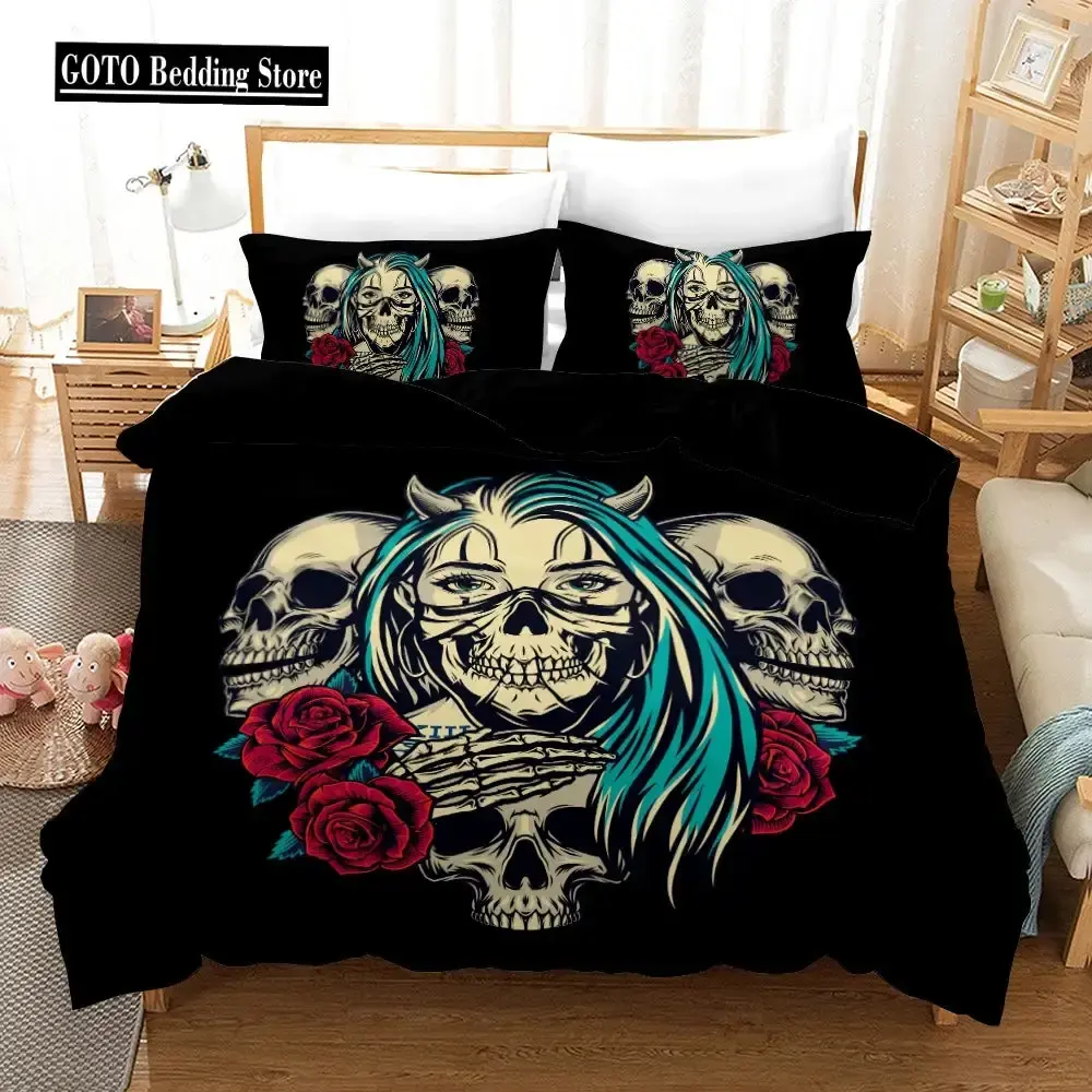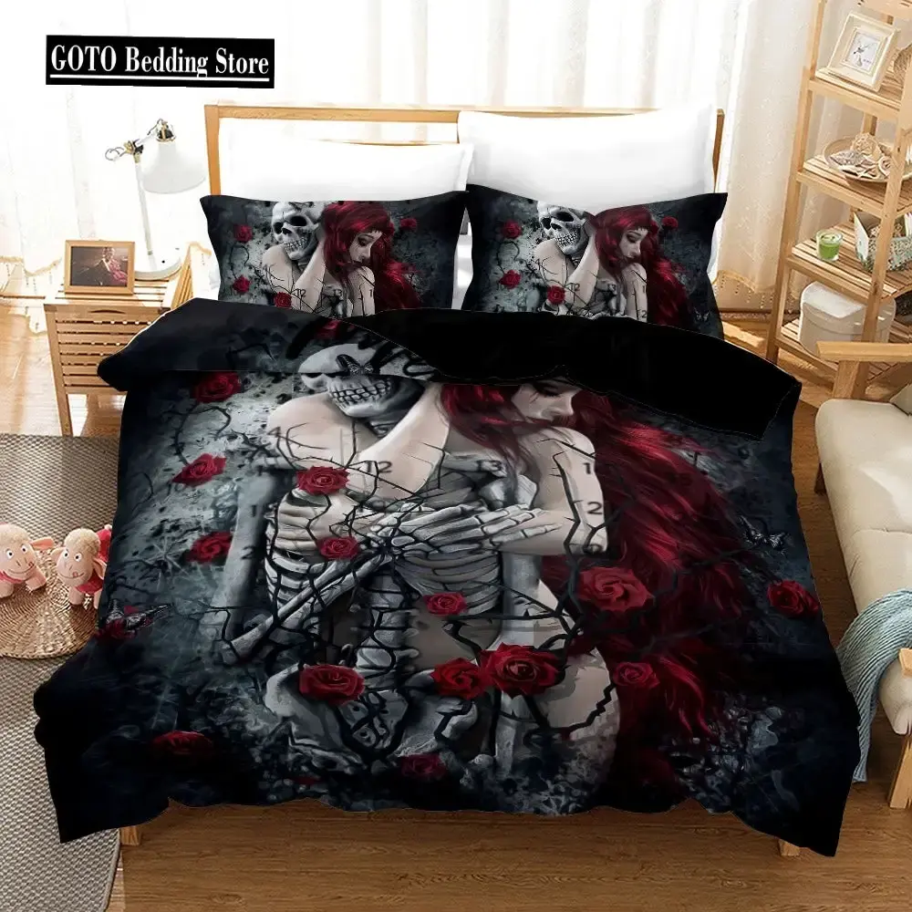 Gothic Rose Skull Bettwäsche Set, 3D Druck, King Size