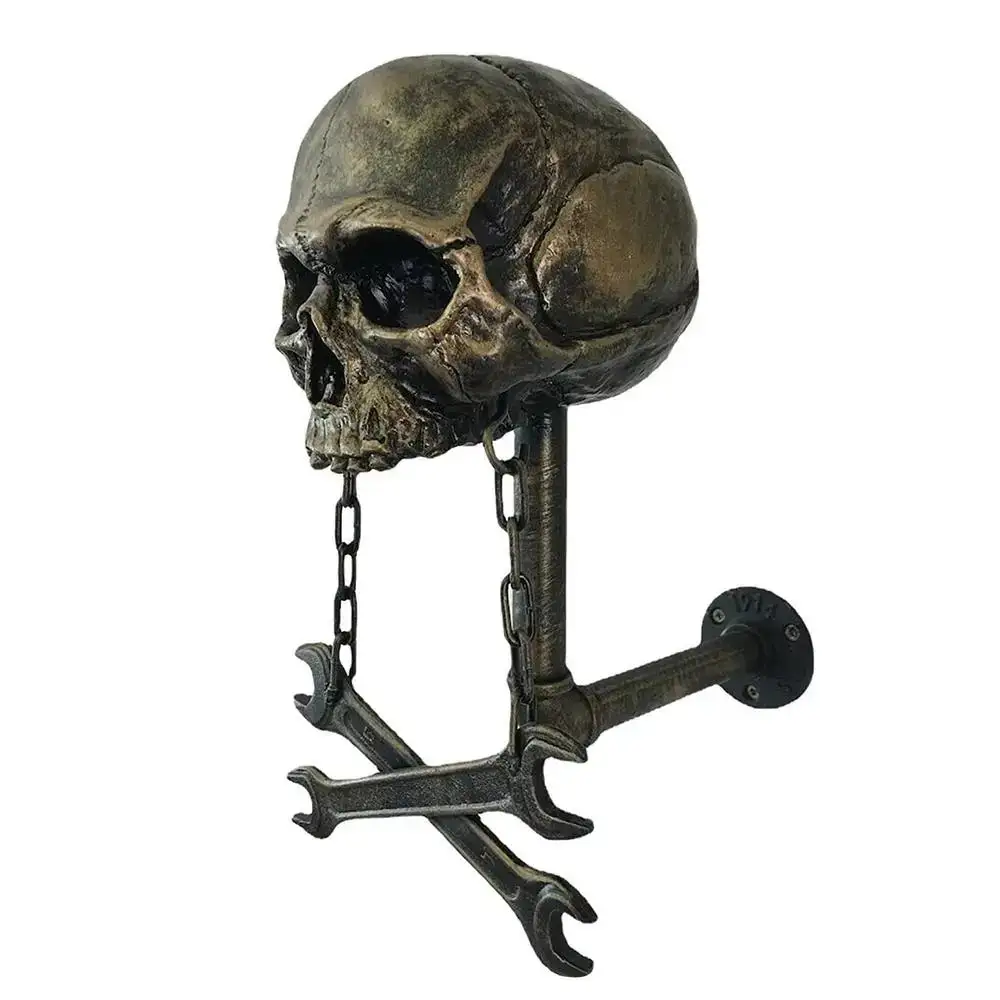 Gothic Schädel Helmhalter Wandhalterung aus Harz, abnehmbar
