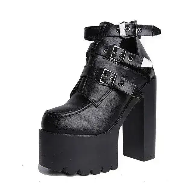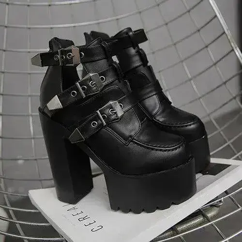 Stylische Gothic-Schuhe mit Keilabsatz und Riemen, ideal für einen eleganten und femininen Look. Perfekt für Frühling, Herbst und Winter. Absatzhöhe: 15 cm.