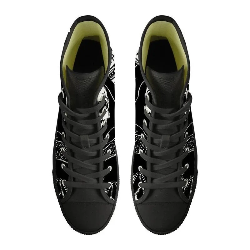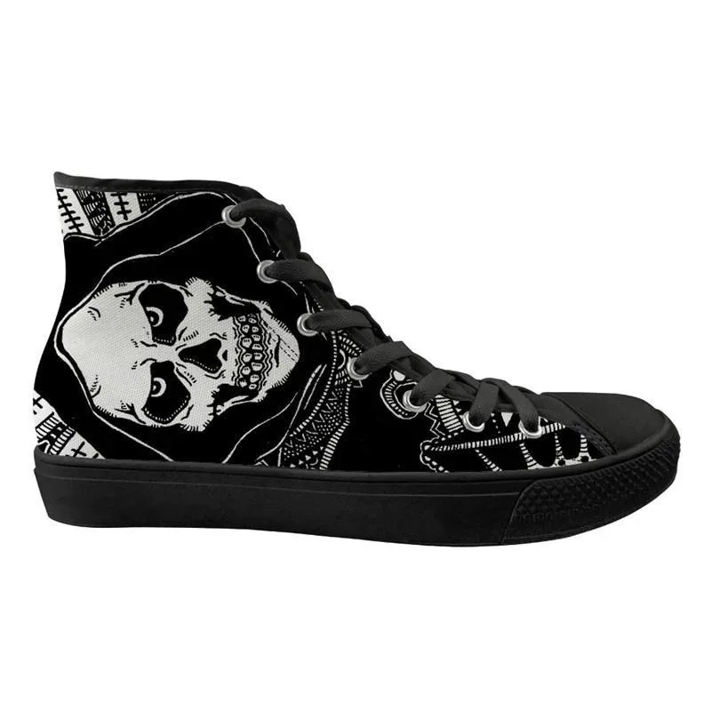 Erleben Sie mit unseren Gothic Schuhe Reaper den perfekten Mix aus düsterem Gothic-Stil und höchstem Tragekomfort. Das robuste Design und die einzigartigen Details machen diese Schuhe zur idealen Wahl für Liebhaber des alternativen Looks. Ob für ein Festival, eine Halloween-Party oder Ihren Alltag mit einer rebellischen Note – diese High-Top-Schuhe sind ein Must-Have!