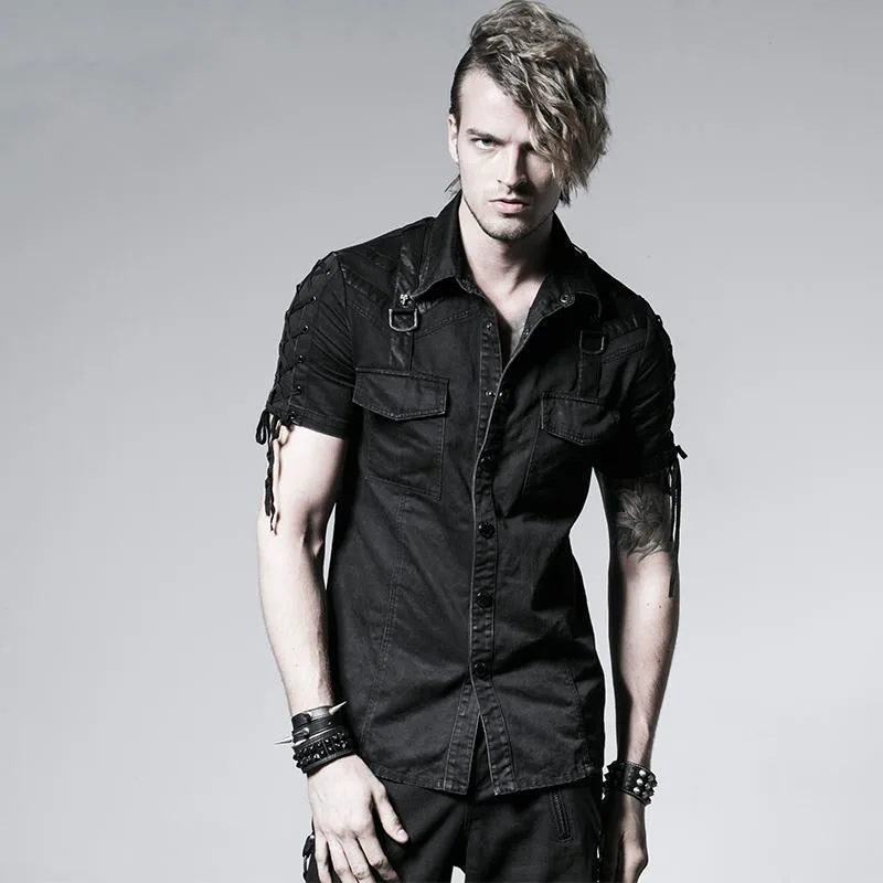 Entdecken Sie unser Gothic Shirt Punk, das perfekte Hemd für Liebhaber des Gothic- und Punk-Stils. Mit seiner militärischen Inspiration und den kunstvollen synthetischen veganen Lederbändern bietet dieses Hemd einen unvergleichlichen Look. Ob für Ihren Alltag, exklusive Punk-Events oder Gothic-Partys – das Gothic Shirt Punk ist ein vielseitiges Kleidungsstück, das Ihren Stil unterstreicht.