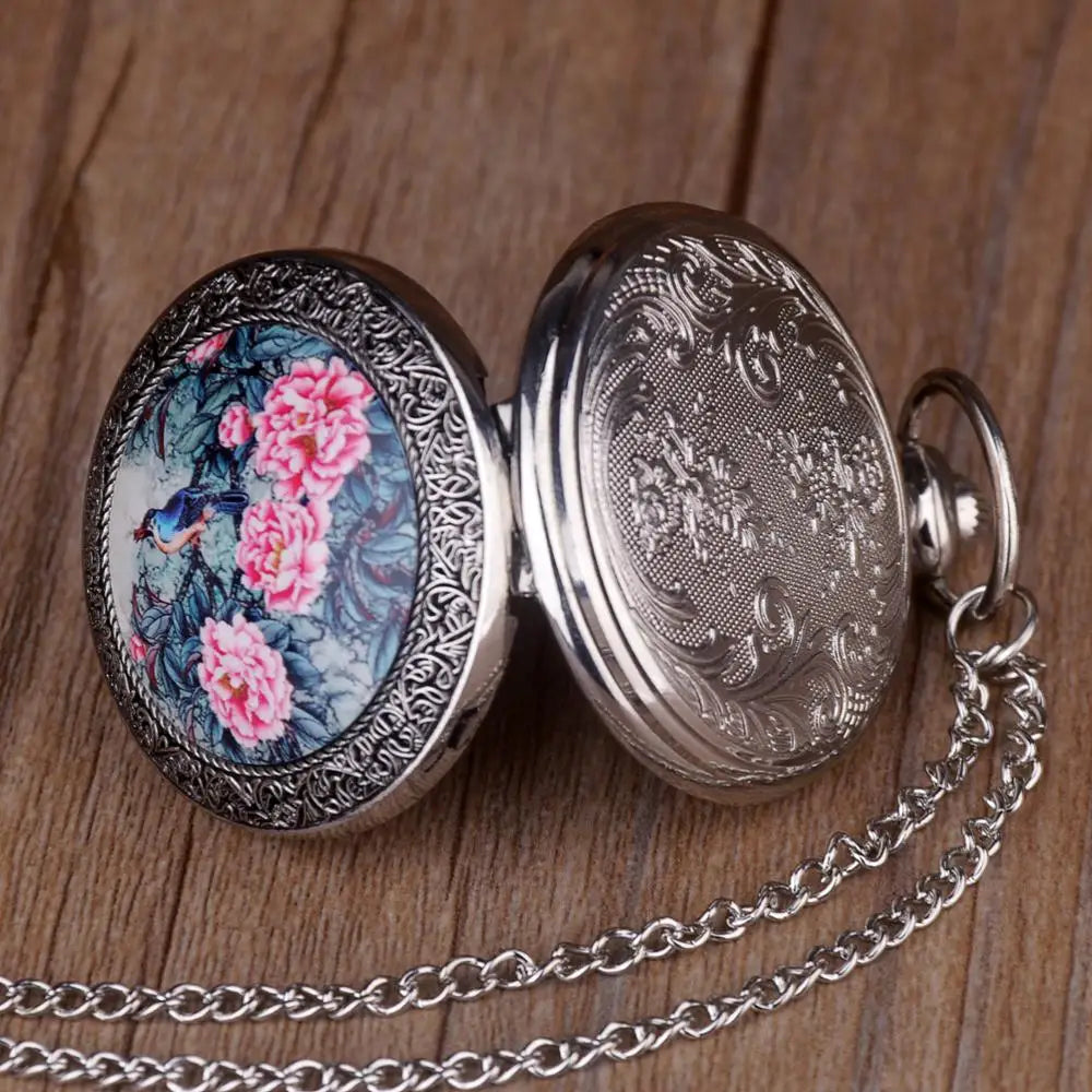 Warum unsere Gothic Silberne Taschenuhr mit Vogel- und Blumenmuster?
