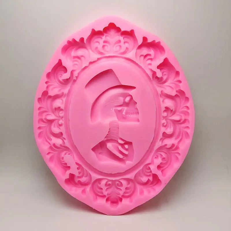 Kreative gothic Silikonform: Totenkopf-Braut für DIY-Fotorahmen, Beton- & Harzdeko – perfekt für Halloween & personalisierte Dekoideen.