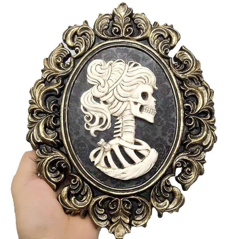 Verwandeln Sie Ihre Kreationen in einzigartige dekorative Highlights mit der Gothic Silikonform Totenkopf Braut für DIY Deko Ideen. Besonders beliebt bei Fans von Gothic Hochzeit Deko und bei hochwertigen DIY-Projekten für Events wie Halloween oder unkonventionelle Hochzeitsfeiern. Ob als Wanddeko oder Bilderrahmen – diese Form ist das perfekte Element für Ihre handgemachte Gothic Deko.