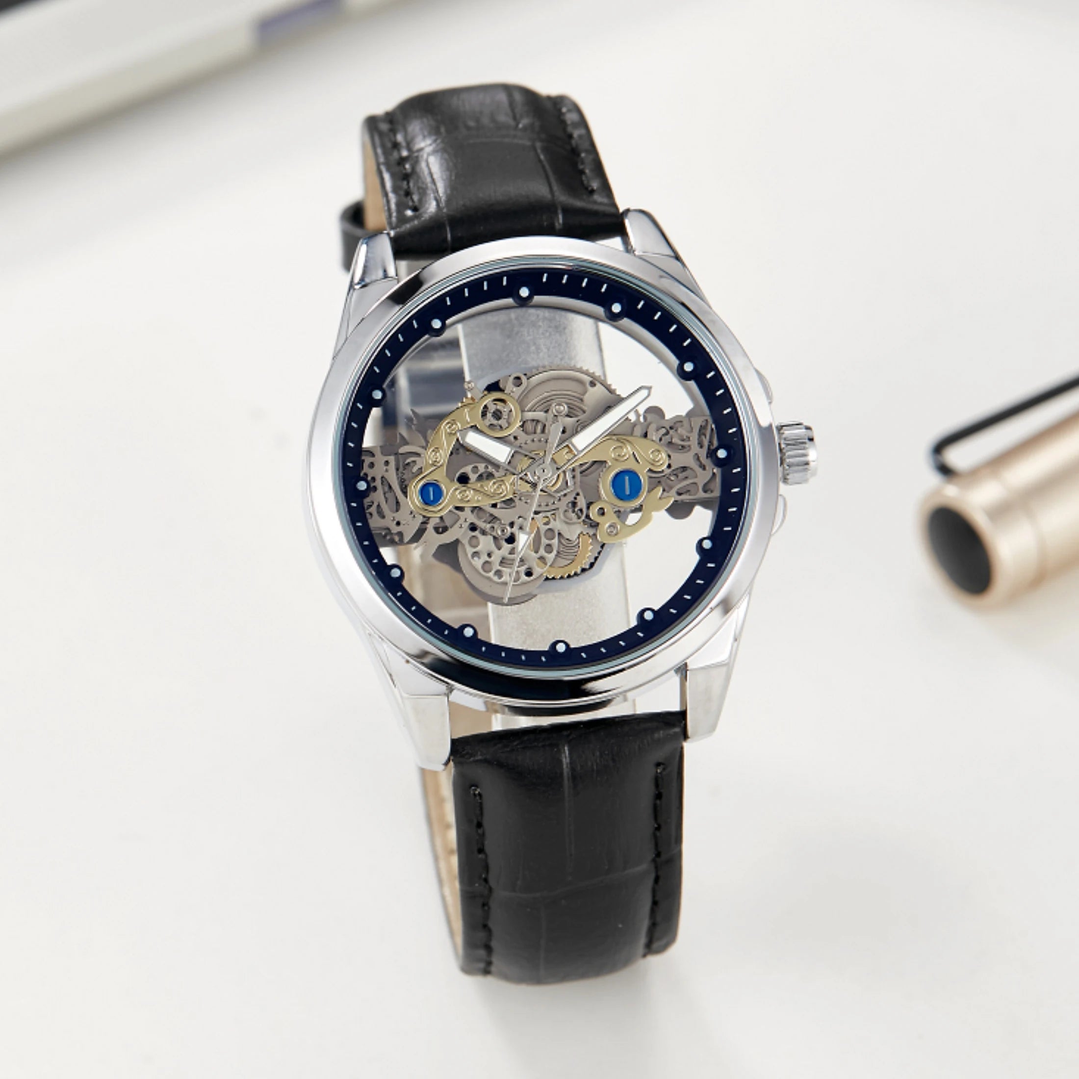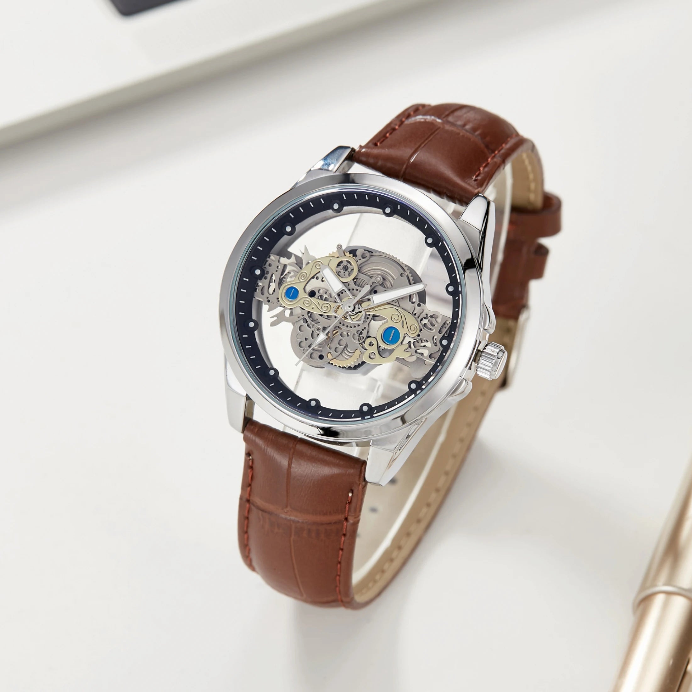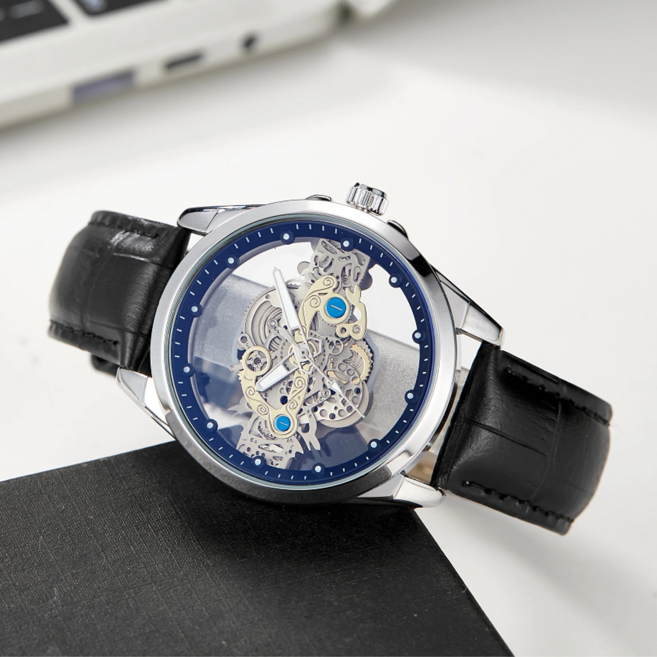 - Transparentes Skelett-Design: Erlaubt freie Sicht auf das Innenleben der Uhr – ein echtes Statement für Uhrensammler und stilbewusste Männer.