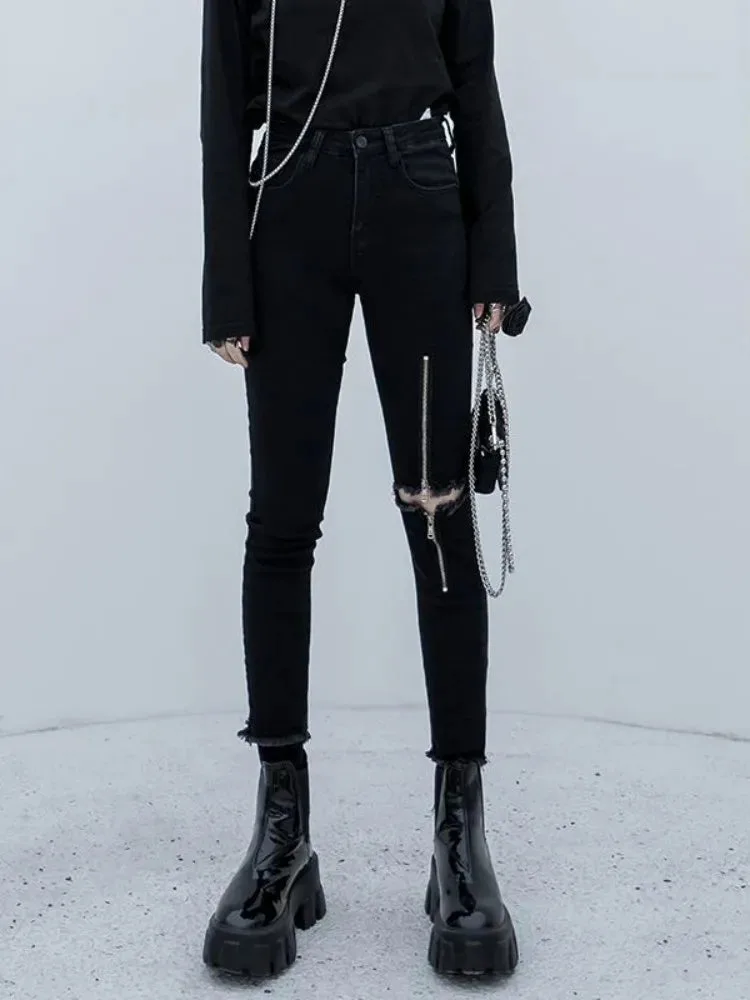 Verpassen Sie nicht die Gelegenheit, Ihre Garderobe mit dieser Gothic Skinny Jeans im Punk Stil aufzuwerten. Holen Sie sich den perfekten rebellischen Look – ideal für Ihren täglichen Begleiter oder besondere Anlässe!