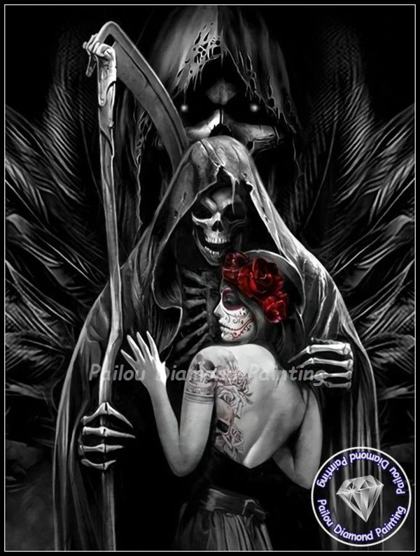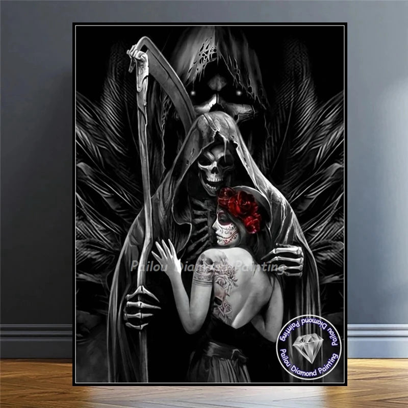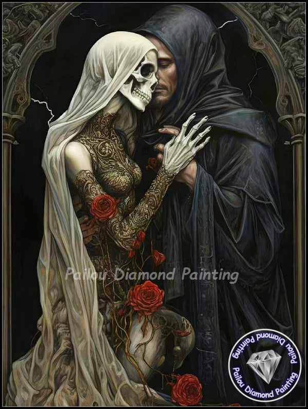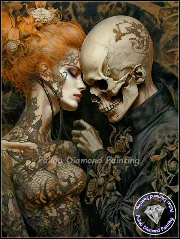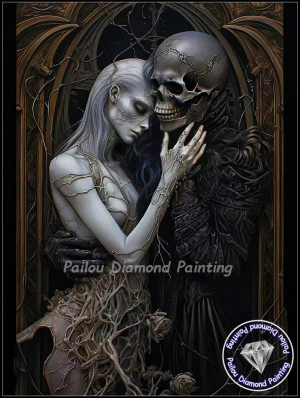 Gothic Skull Love – Dunkle Diamant-Mosaikmalerei