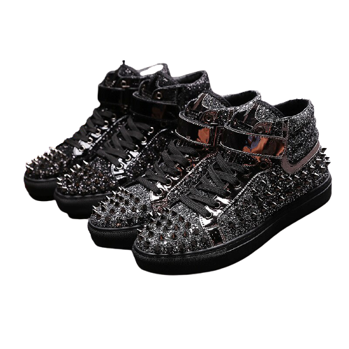 Entdecken Sie unsere Gothic Sneaker mit Pailletten, die perfekte Wahl für Herren, die einen außergewöhnlichen und rebellischen Stil lieben. Diese einzigartigen Sneaker kombinieren Elemente der Gothic-Ästhetik mit einem eleganten, modernen Design. Ob für Hochzeiten, Bankette, Partys oder Abschlussbälle – dieses Paar Schuhe ist ein absoluter Hingucker.