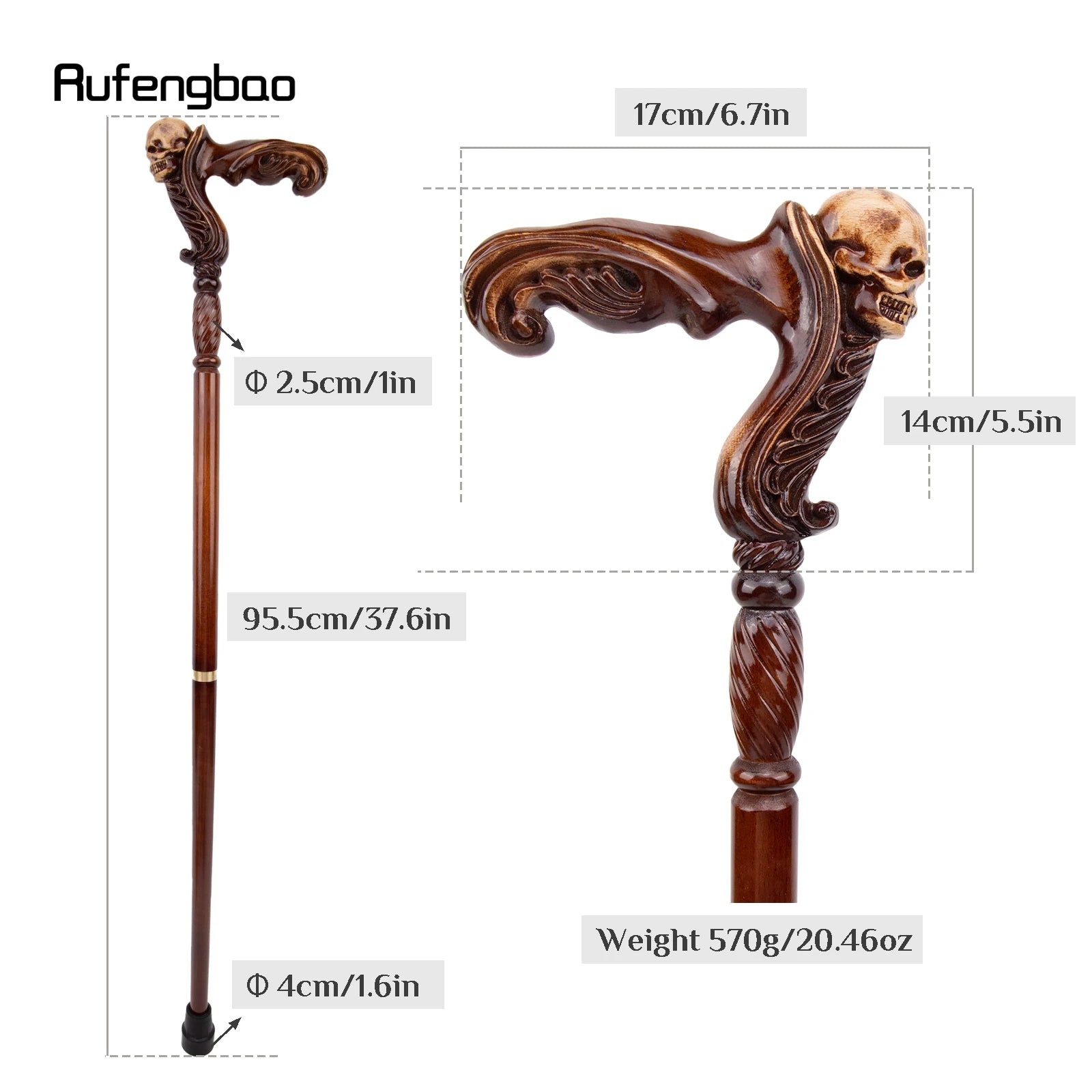 Der Gothic Spazierstock hat eine Einheitsgröße mit einer Gesamtlänge von ca. 93 cm und eignet sich für Damen und Herren jeder Größe. Ideal für stilvolle Auftritte auf Gothic-Events, Maskenbällen oder Fotoshootings.